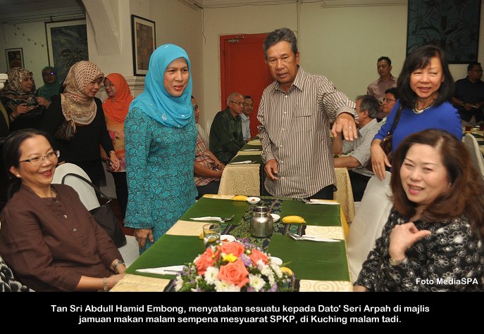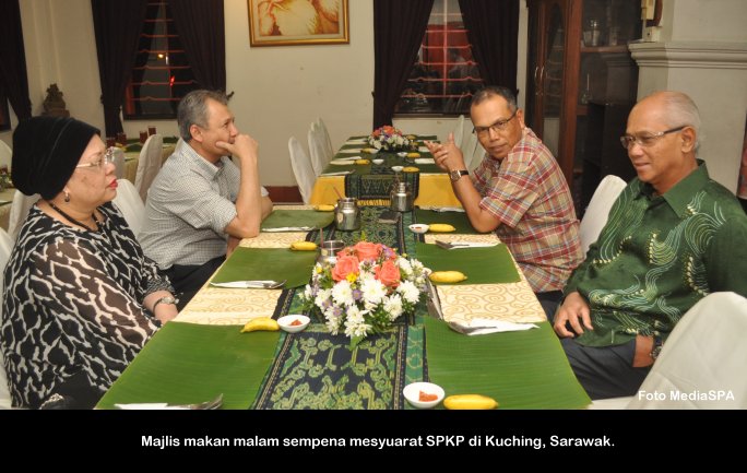 KUCHING, 7 Sept------ Dato’ Seri Arpah Abdul Razak malam tadi hadir di majlis makan malam sempena Mesyuarat Suruhanjaya Perkhidmatan Kehakiman dan Perundangan (SPKP), di Kuching Sarawak. Turut hadir, Datuk Azailiza Mohd Ahad, Tan Sri Dato’ Seri Zulkefli Ahmad Makinuddin, Tan Sri Dato’ Seri Md. Raus Sharif, Dato Rhodzariah Bujang, Datuk Tun Abd Majid Tun Hamzah. Hadir sama Setiausaha S.P.A, Puan Lim Mooi Eia. Terdahulu pada sebelah petang, Dato’ Seri Arpah telah mempengerusikan Mesyuarat Pra SPKP. ------ MediaSPA