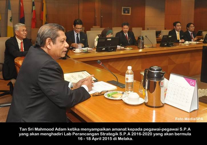 KUCHING 31 Oktober ----- Pengerusi SPA, YBhg. Tan Sri Mahmood Adam hari ini telah merasmikan Pusat Temu Duga SPA di Kuching, Sarawak. Turut hadir di majlis tersebut, Timbalan Pengerusi, YBhg. Dato' Segarajah Ratnalingam, Ahli-Ahli Suruhanjaya dan pegawai-pegawai kanan SPA. Terdahulu sebelum itu, pada Hari Isnin lepas, Pengerusi SPA telah mengadakan mesyuarat Suruhanjaya kali ke-35 dan merasmikan kursus "Transformasi Dasar Baru SPA" anjuran ASPA. Beliau juga mengadakan Majlis Interaksi bersama Ketua-ketua Jabatan Persekutuan dan Badan-Badan bukan Kerajaan diikuti dengan lawatan ke tapak pameran Karnival Kerjaya SPA di Kompleks Belia dan Sukan Kuching serta perjumpaan dengan Urus setia SPA Cawangan Sarawak semalam. Pada pagi ini juga selepas merasmikan Pusat Temu Duga SPA Kuching, YBhg. Tan Sri Mahmood Adam mengadakan perjumpaan bersama Suruhanjaya Perkhidmatan Awam Negeri Sarawak. ----- MediaSPA