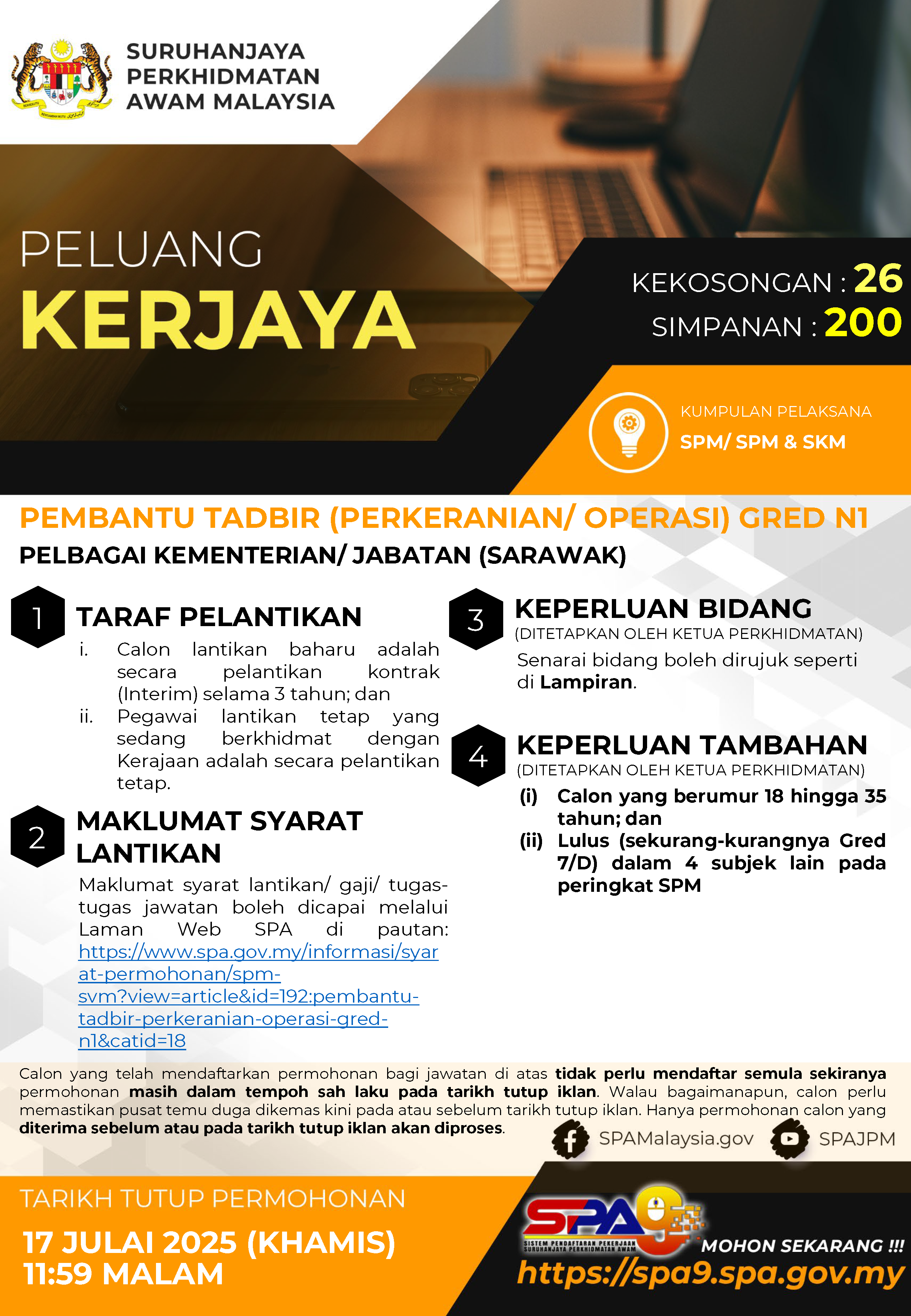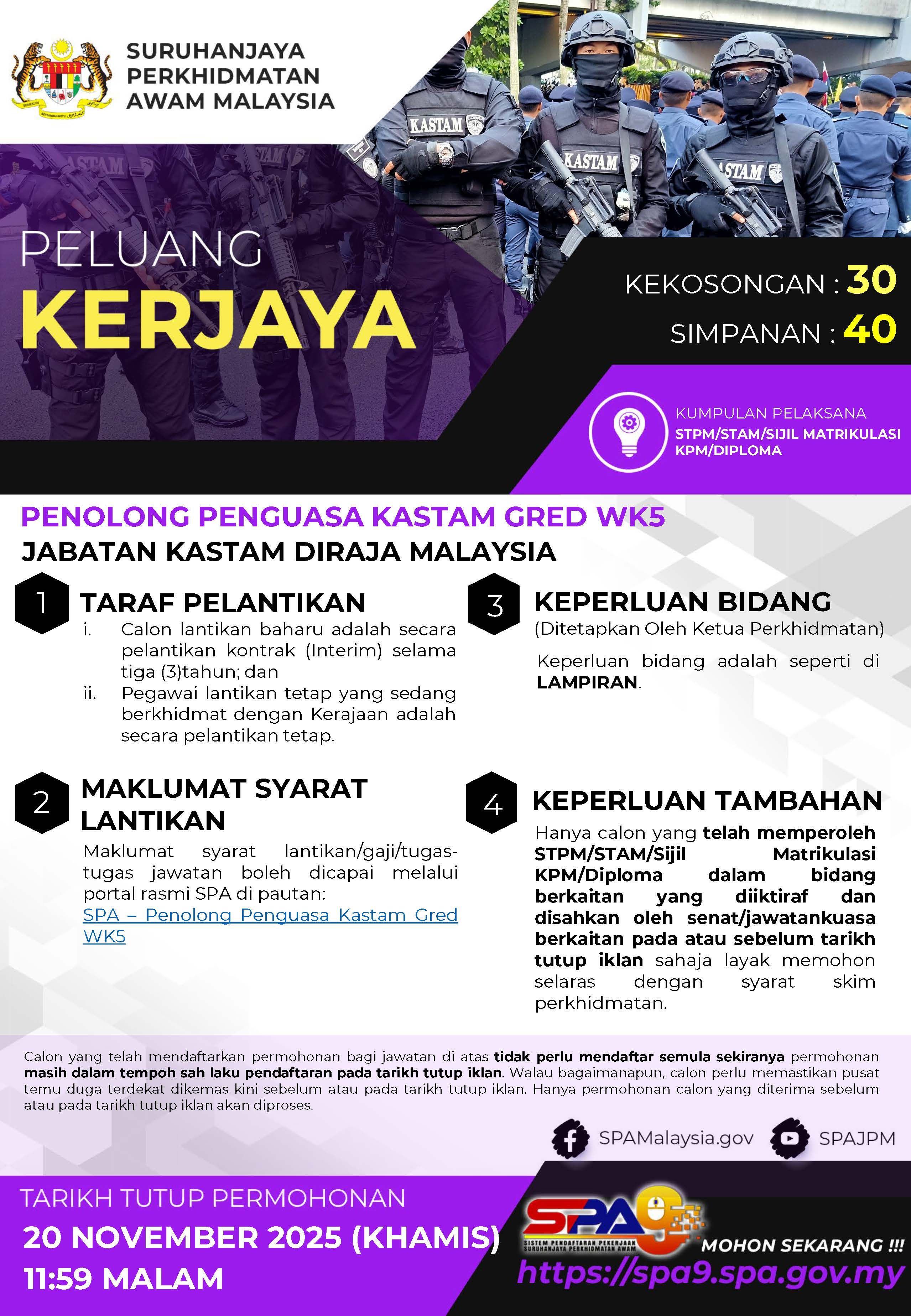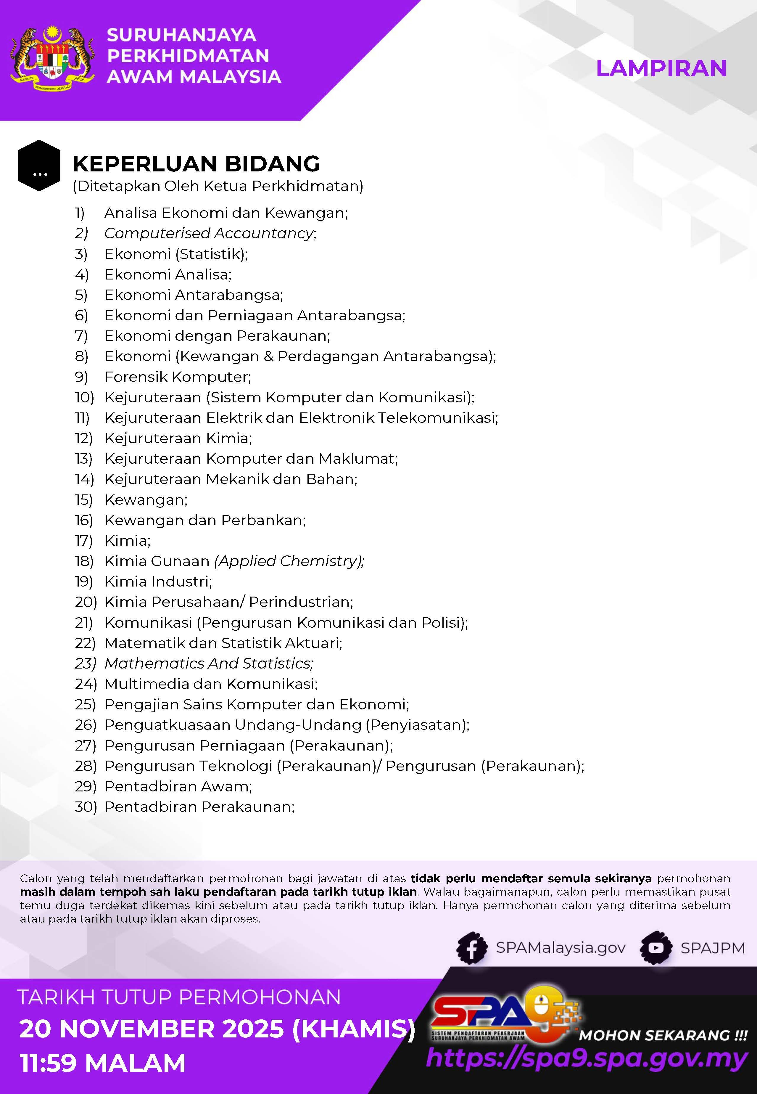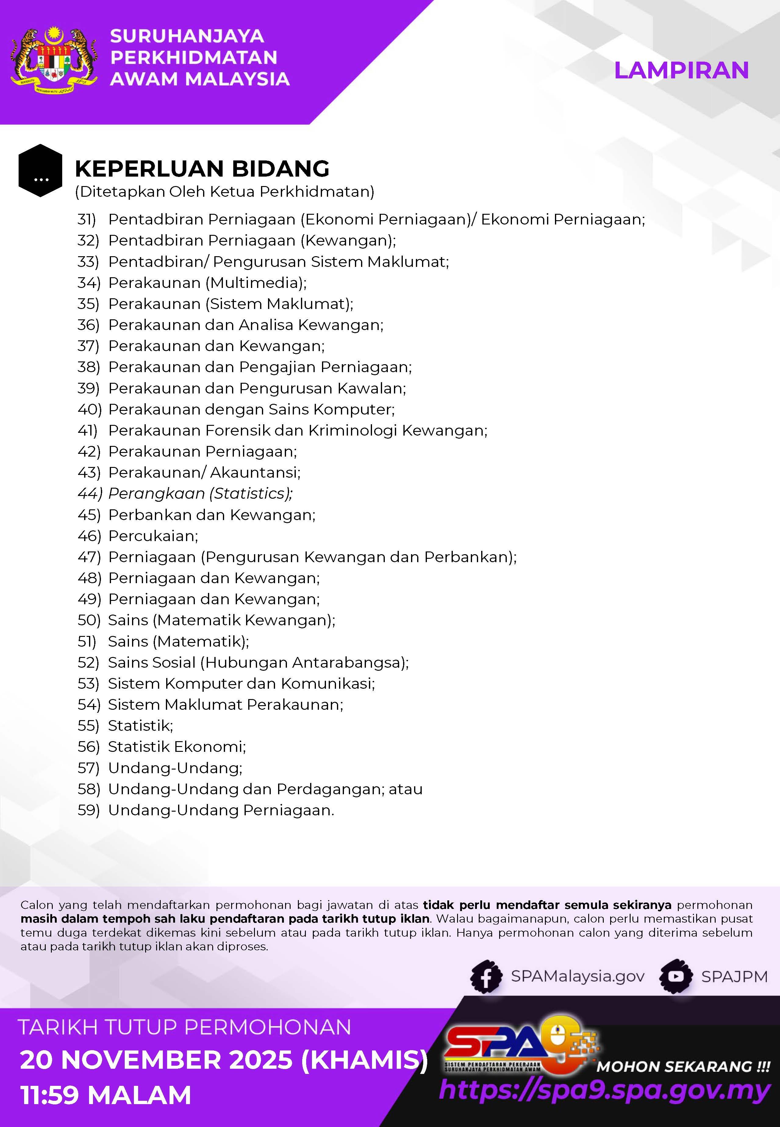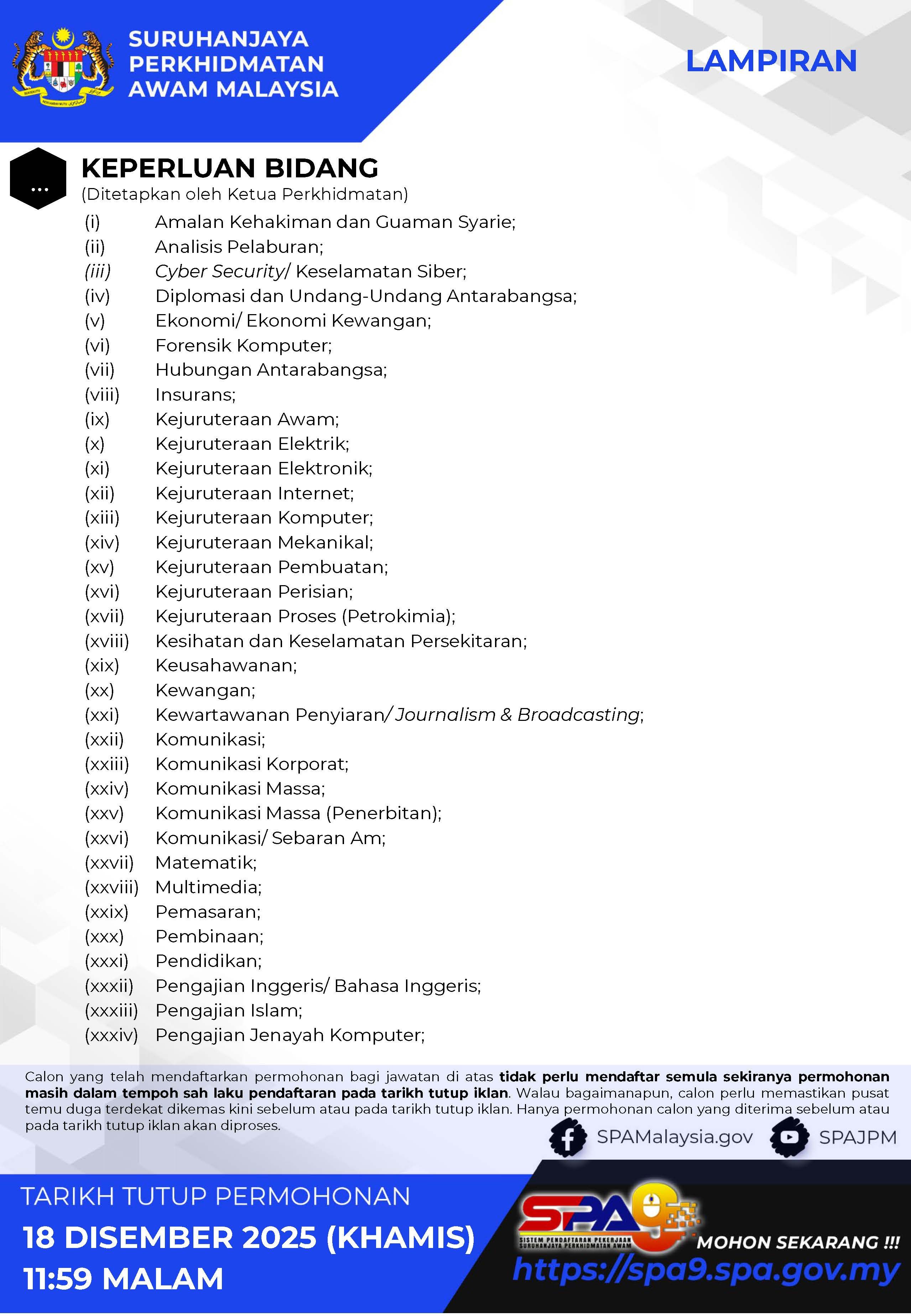 Tarikh tutup permohonan : 18 Disember 2025 (Khamis), jam 11.59 malam