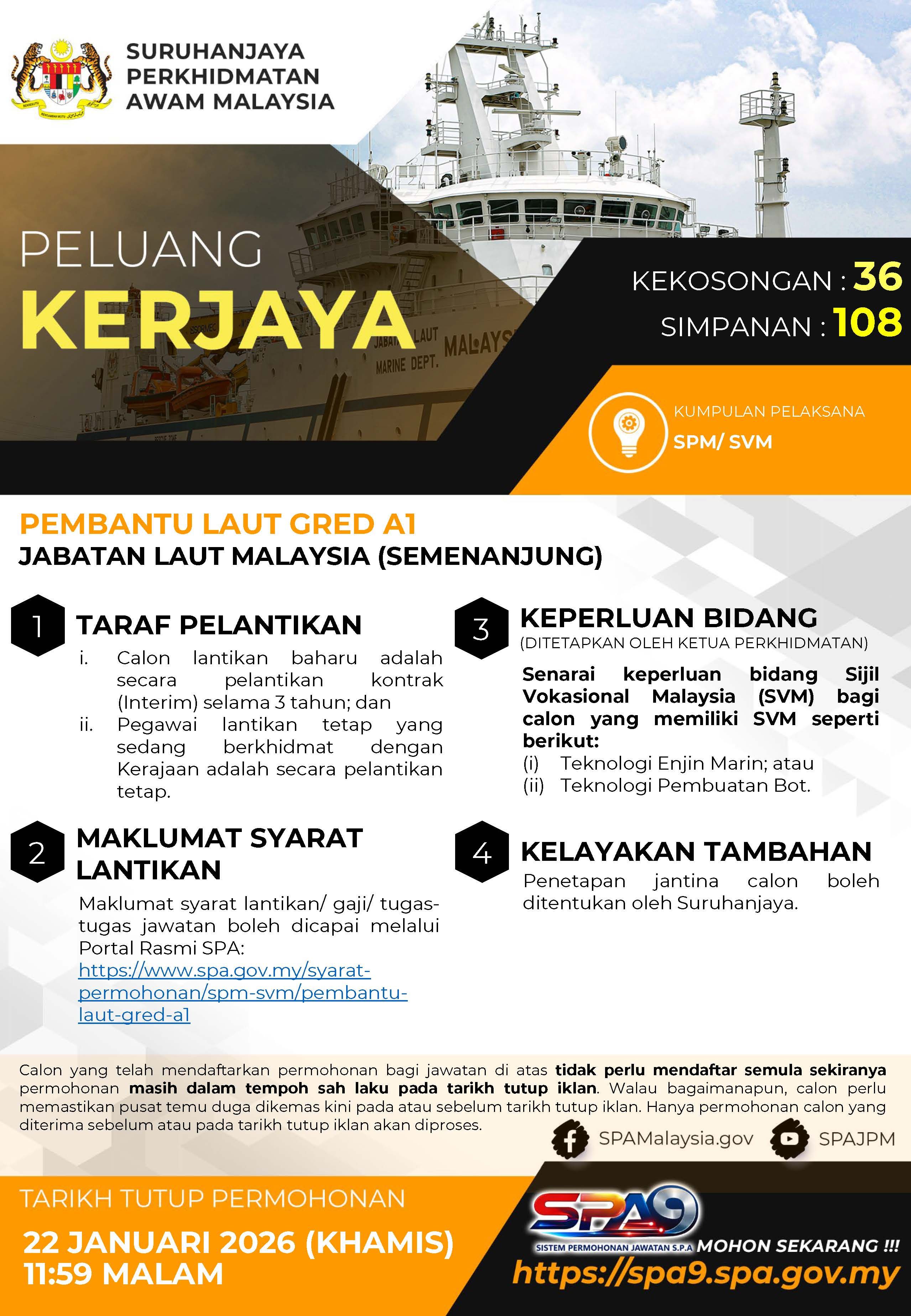 Tarikh tutup permohonan : 22 Januari 2026 (Khamis) jam 11:59 malam