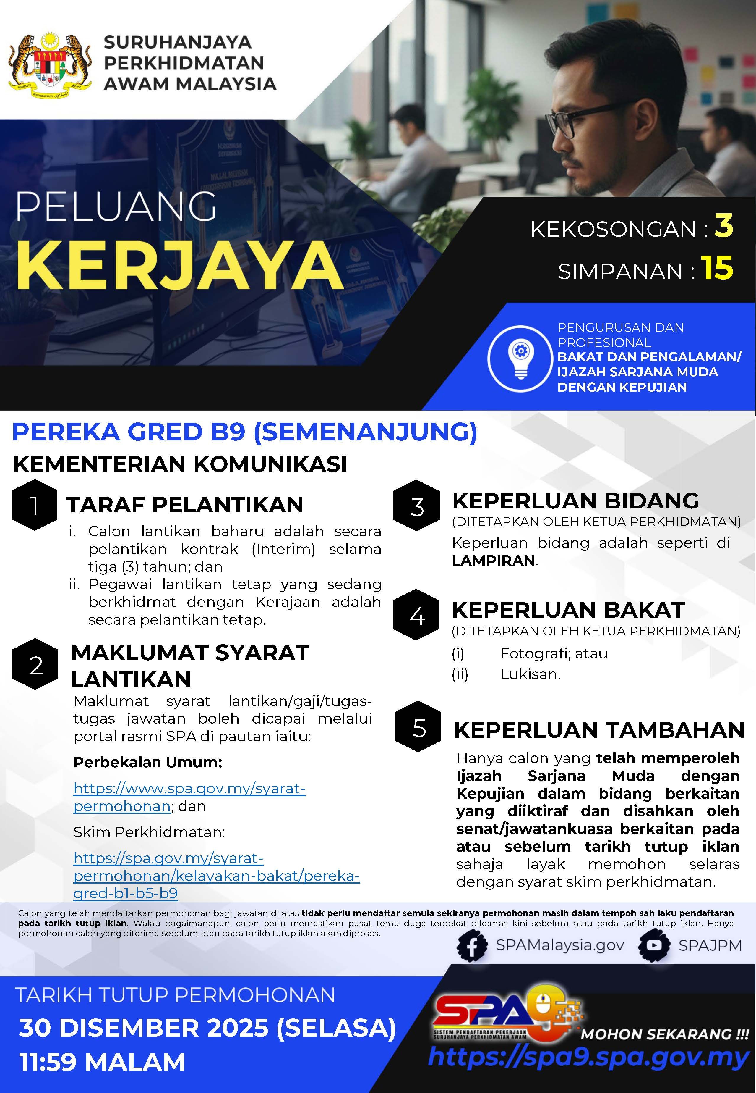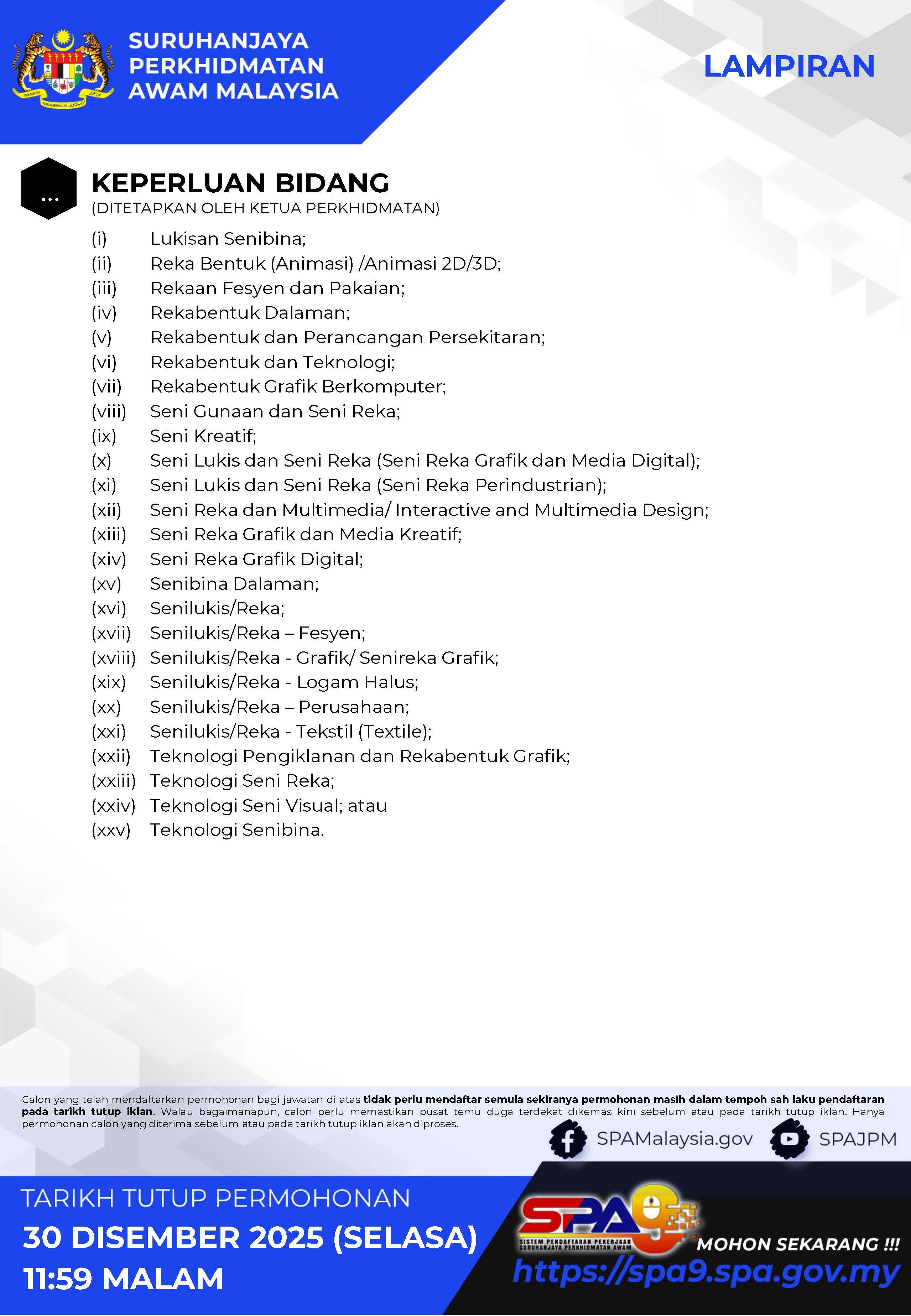 Tarikh tutup permohonan : 30 Disember 2025 (Selasa), jam 11.59 malam