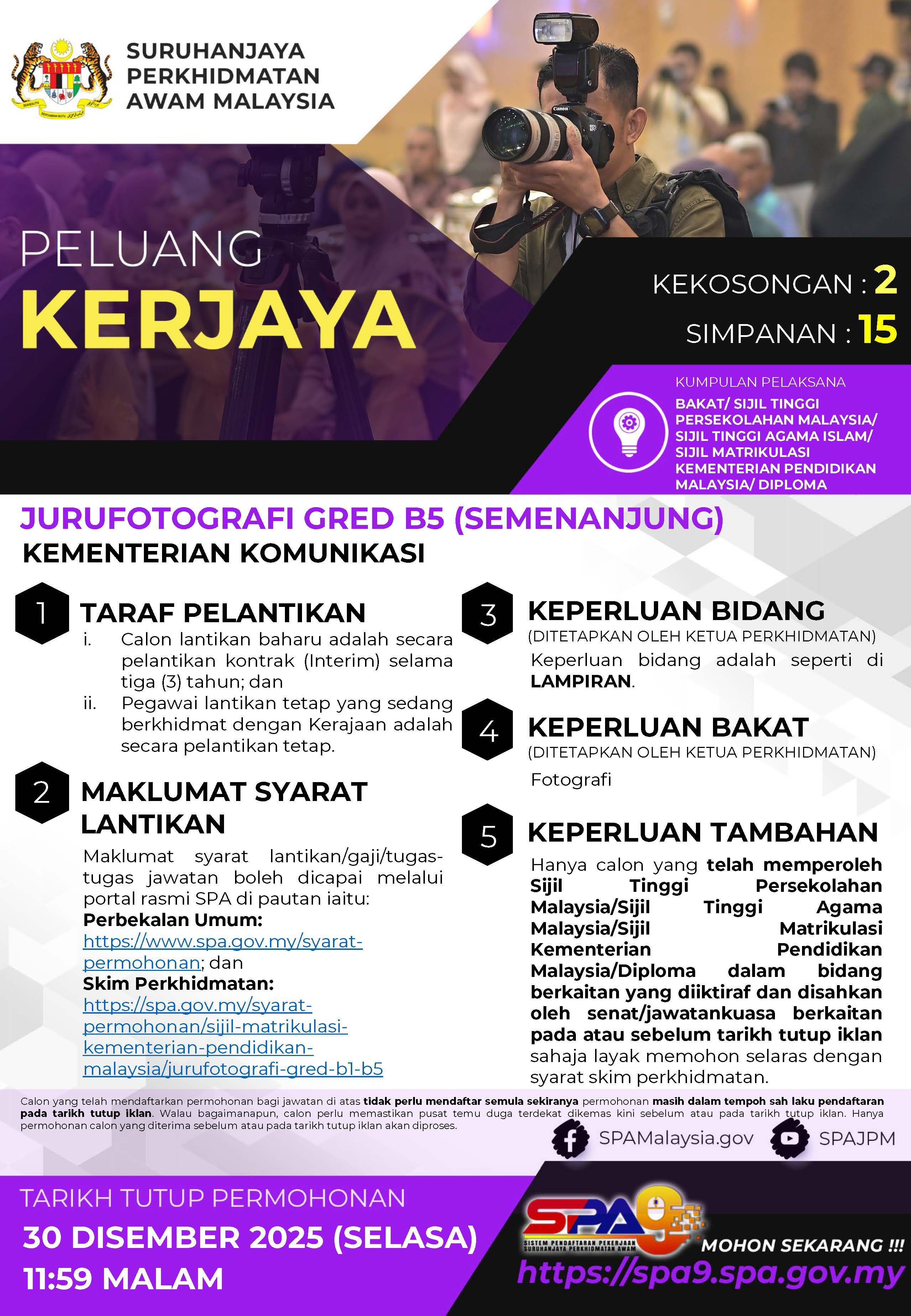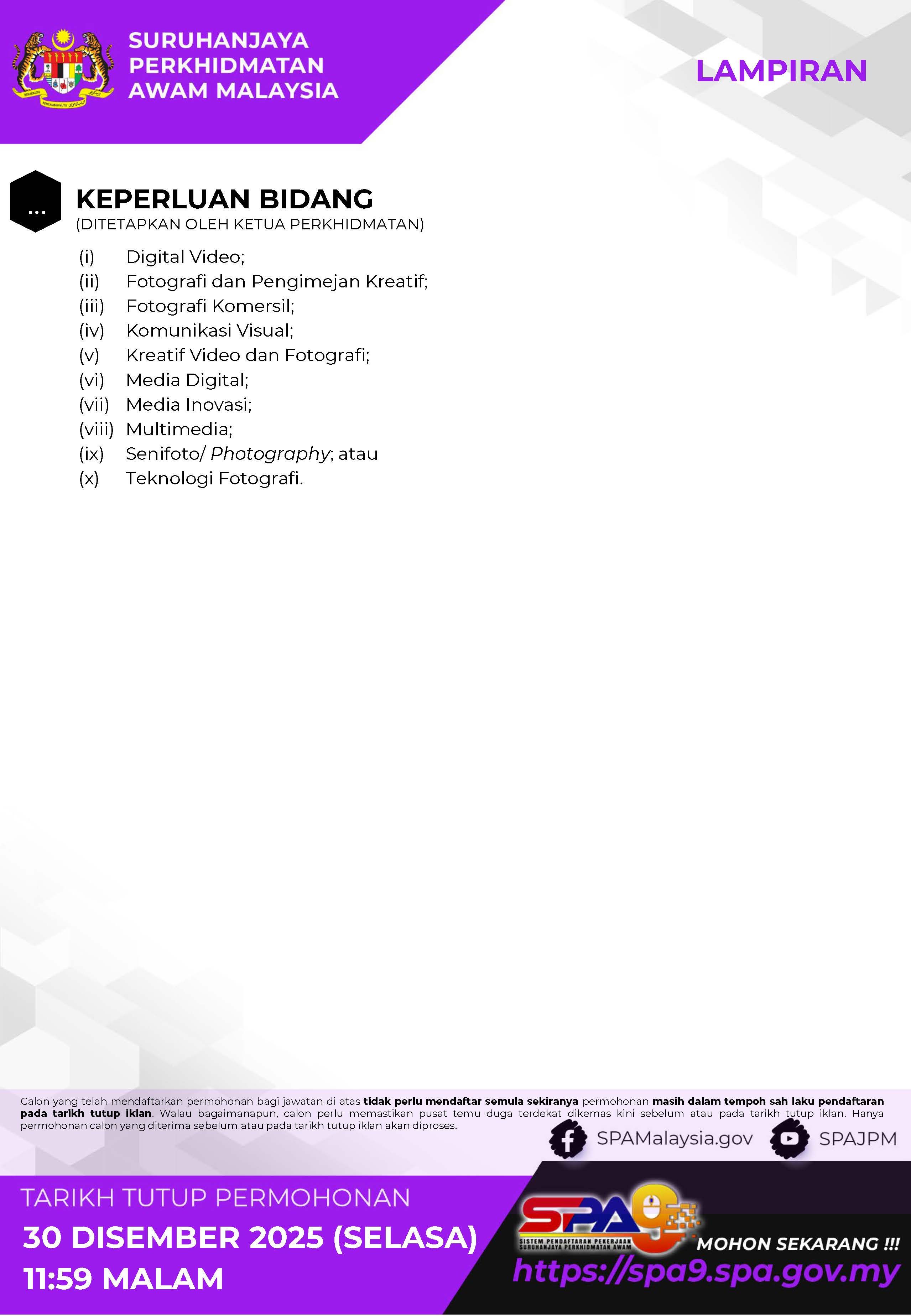 Tarikh tutup permohonan : 30 Disember 2025 (Selasa), jam 11.59 malam