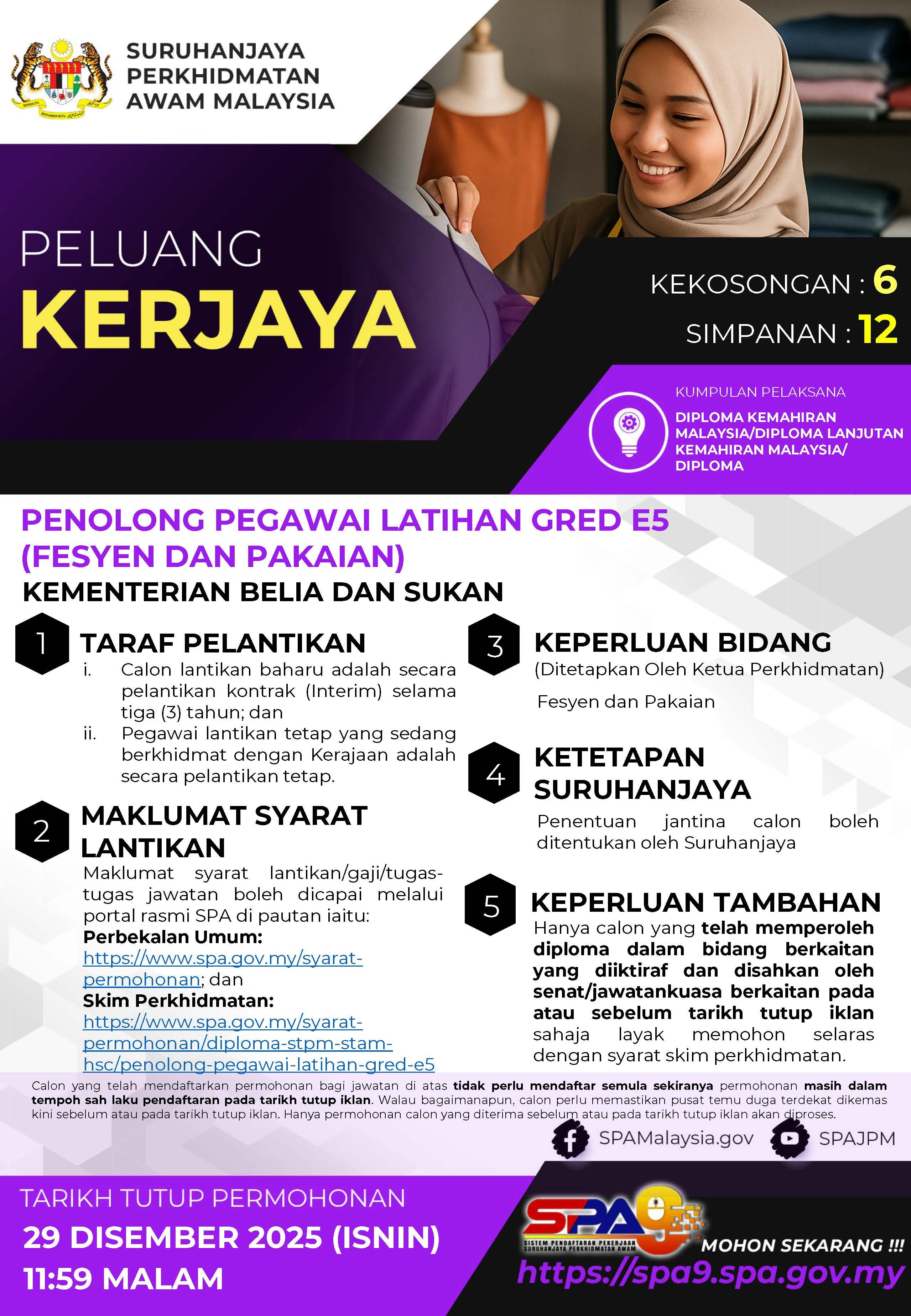 Penolong Pegawai Latihan Gred E5 (Fesyen Dan Pakaian)