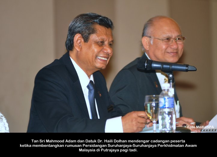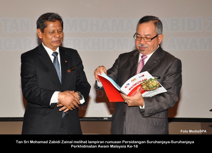 PUTRAJAYA, 13 Mei ------ Penutupan Persidangan Suruhanjaya-Suruhanjaya Perkhidmatan Awam Malaysia Ke-18 telah disempurnakan oleh Ketua Pengarah Perkhidmatan Awam Malaysia, Tan Sri Mohamad Zabidi Zainal hari ini. Turut hadir Pengerusi S.P.A Tan Sri Mahmood Adam, Pengerusi SPP Datuk Dr. Haili Dolhan, Pengerusi-Pengerusi SPA Negeri Ahli-Ahli Suruhanjaya serta wakil-wakil jabatan. Terdahulu sesi menimbang dan meluluskan rumusan Persidangan Ke-18 telah dipengerusikan oleh Tan Sri Mahmood Adam. ------MediaSPA