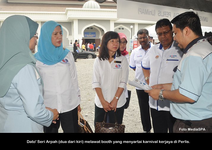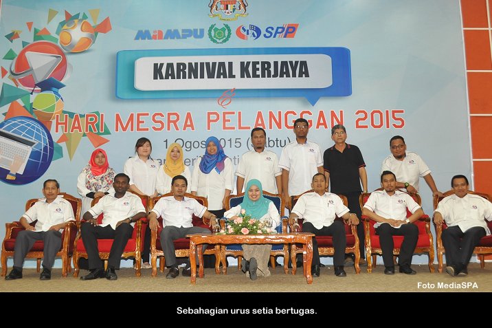 PERLIS, 1 Ogos ------ Suruhanjaya Perkhidmatan Awam Malaysia (S.P.A) telah mengadakan Karnival Kerjaya & Hari Mesra Pelanggan 2015 yang diadakan di Dewan Seri Melati Beseri, Perlis pada Sabtu lepas. Perasmian Karnival kerjaya anjuran bersama Suruhanjaya Perkhidmatan Pelajaran (SPP), Unit Tadbiran Dan Perancangan Pengurusan Manusia ( MAMPU) peringkat Negeri Perlis telah disempurnakan oleh Menteri Di Jabatan Perdana Menteri (JPM), Datuk Joseph Entulu Anak Belaun. Turut hadir Speaker Dewan Undangan Negeri, YB. Tuan Haji Hamdan Bahari, Pengerusi S.P.A, Dato’ Seri Arpah Abdul Razak, Pengerusi SPP, Tan Sri Dr. Haili Dolhan, Ketua Pengarah MAMPU Datuk Seri Zainal Rahim serta wakil Jabatan Kerajaan Negeri dan Persekutuan. ------  MediaSPA