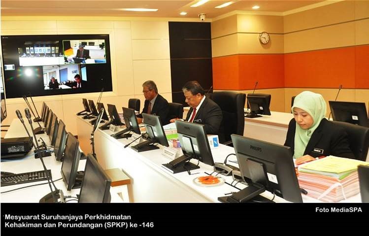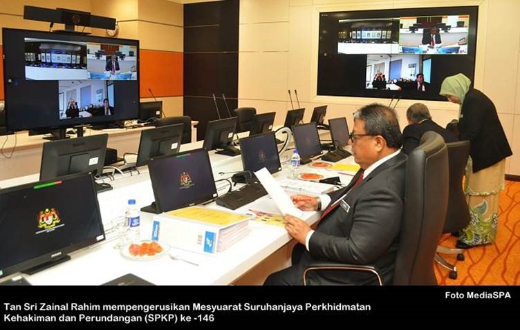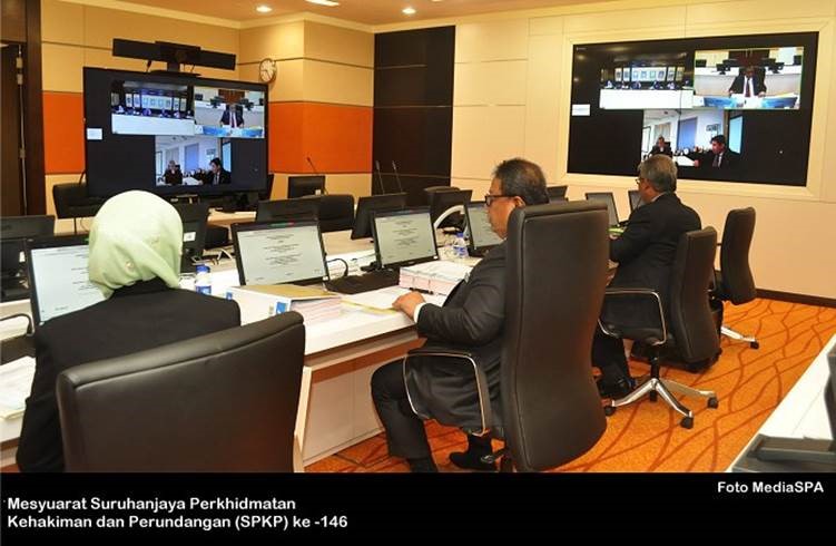 PUTRAJAYA 20 November ----- Suruhanjaya Perkhidmatan Kehakiman dan Perundangan (SPKP) telah mengadakan mesyuarat yang ke-146 secara dalam talian di Putrajaya pada Jumaat. Mesyuarat telah dipengerusikan oleh Pengerusi SPKP, YBhg. Tan Sri Zainal Rahim Seman yang turut dihadiri Ahli-Ahli SPKP iaitu Peguam Negara, YAA Presiden Mahkamah Rayuan, YAA Hakim Besar Malaya, YAA Hakim Besar Sabah dan Sarawak, YA Hakim-Hakim Mahkamah Persekutuan dan Setiausaha SPKP, Datuk Zohari Said. Hadir sama Peguam Cara Negara, Ketua Pendaftar Mahkamah Persekutuan dan pegawai-pegawai Urus Setia SPKP. Mesyuarat telah menimbangkan kertas-kertas bagi urusan pelantikan, pemangkuan, tatatertib dan isu-isu dasar perkhidmatan berkaitan Pegawai Undang-Undang dalam Perkhidmatan Kehakiman dan Perundangan ----- MediaSPA