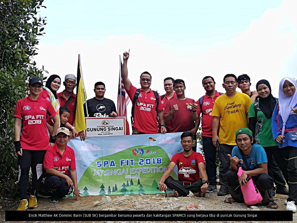 SARAWAK, 23 September ----- SPA Malaysia Cawangan Sarawak (SPAMCS) telah melaksanakan program SPA Fit 2018 - Ekspedisi Gunung Singai, Bau melalui Kelab Rekreasi & Kebajikan (SPARK) SPA Malaysia Cawangan Sarawak. Seramai 23 peserta dan kakitangan SPA Malaysia Cawangan Sarawak telah menyertai program tersebut. Objektif penganjuran program ini adalah bertujuan mengeratkan semangat berpasukan, setia kawan, menguji tahap kekuatan mental dan fizikal serta membantu mengesan/menyelamat mangsa pendakian Gunung Singai yang telah hilang (Stanley Kho) semasa mendaki sejak 17 September 2018 yang lepas. Semasa pendakian bermula selama lebih kurang 40 minit, pendaki yang hilang Saudara Stanley Kho telah berjaya ditemui oleh penduduk kampung berdekatan. Pendakian Gunung Singai kali ini diketuai oleh Encik Doni Bin Sahari (merupakan Pengerusi Kelab Aktiviti Sukan Lasak Kenyalang) turut dibantu oleh beberapa ahli yang lain. Tempoh pendakian ini mengambil masa lebih kurang 2 jam untuk sampai ke puncak Gunung Singai dan 2 jam untuk turun ke kaki Gunung Singai dimana setengah jalan ke lokasi laluannya adalah dibuat daripada kayu belian, setengah lagi adalah laluan tanah dan curam dalam 80 Darjah. Tahniah kepada semua yang telah sampai ke puncak dan semua yg terlibat . ----- Urus Setia Sarawak