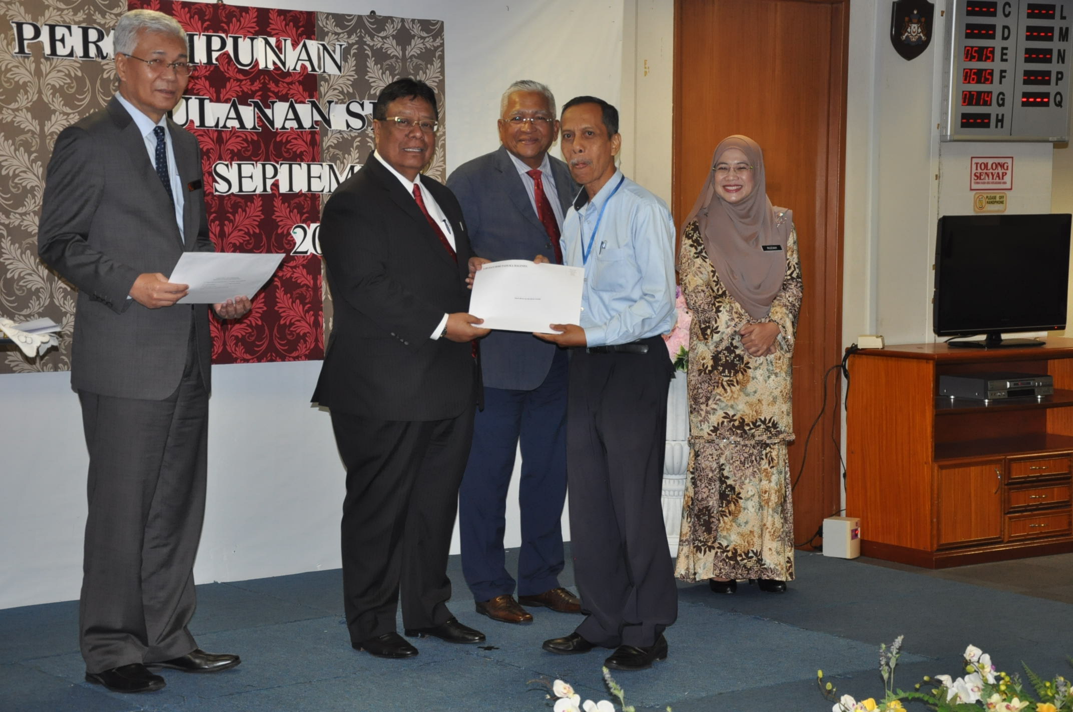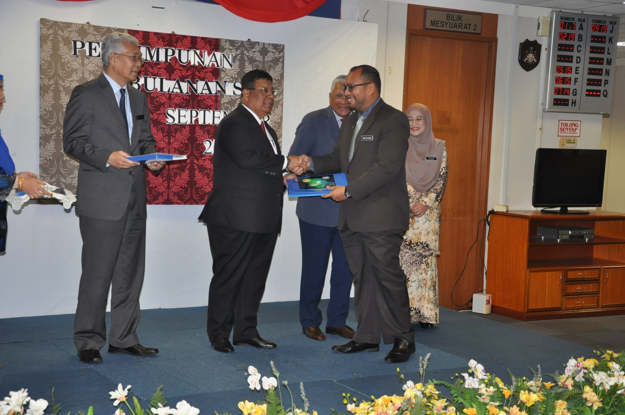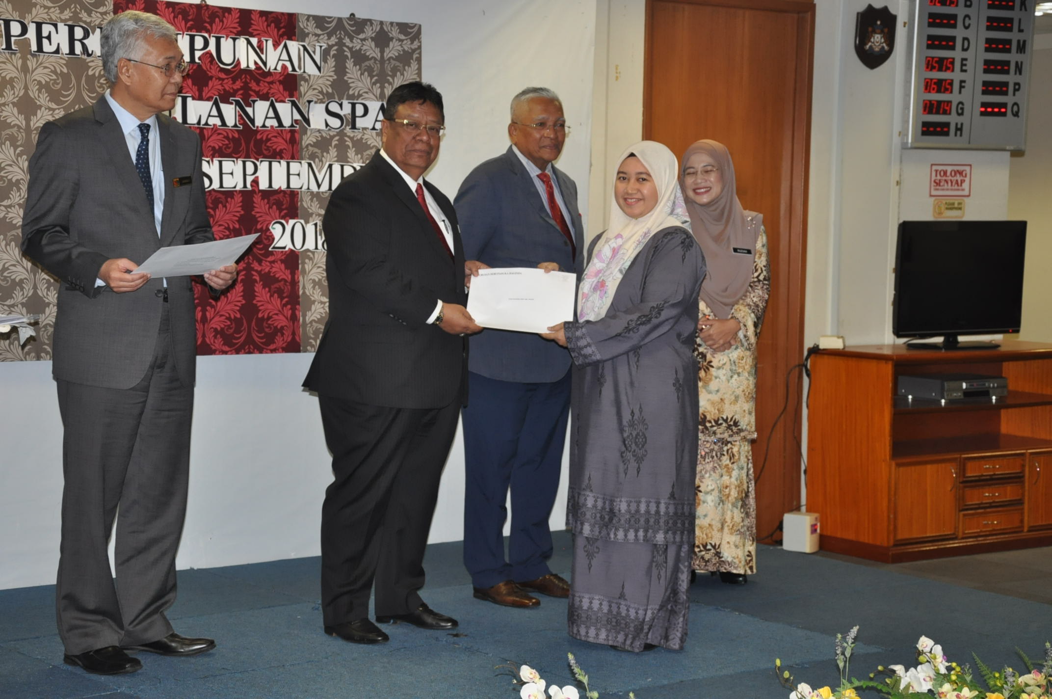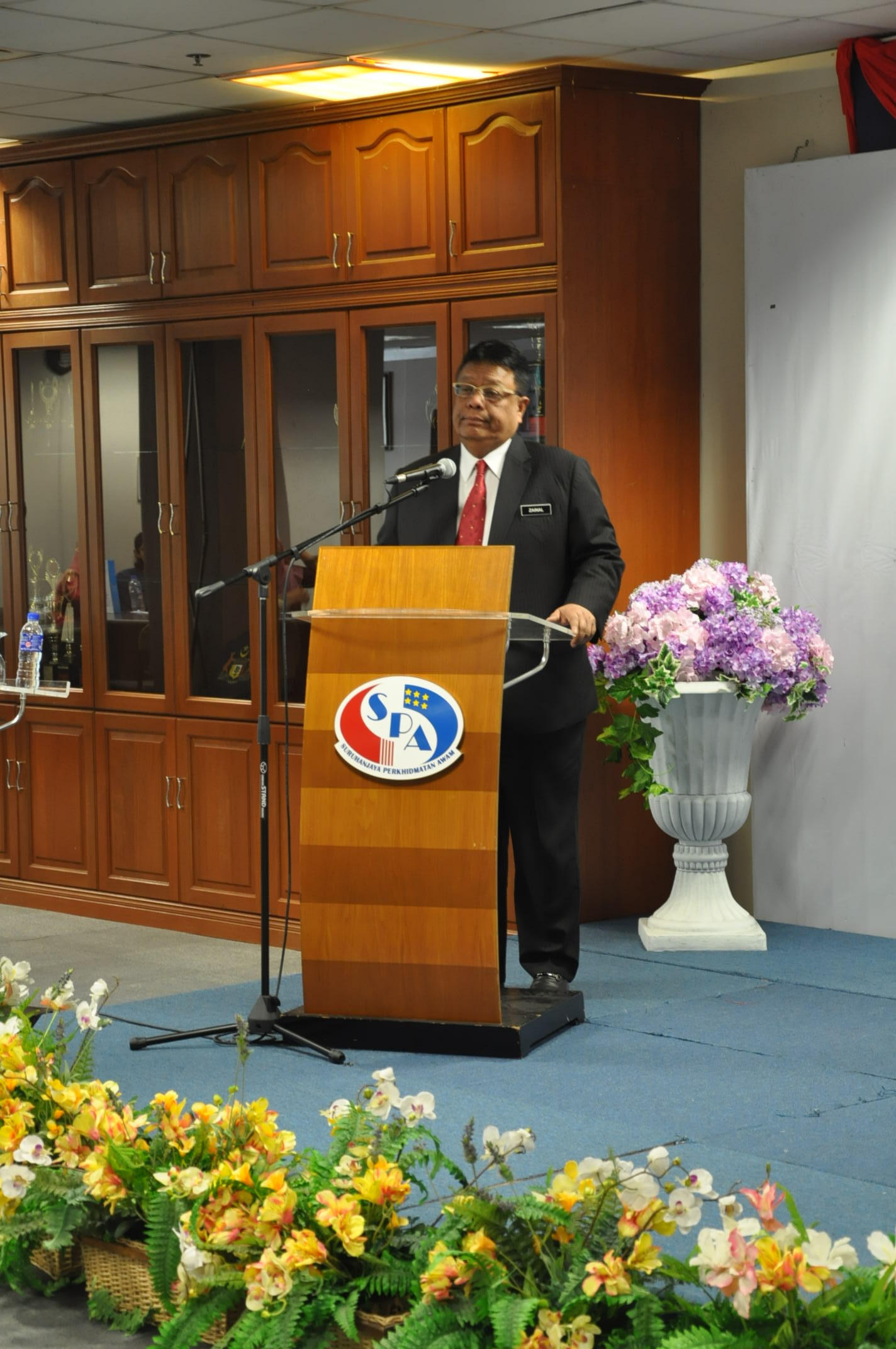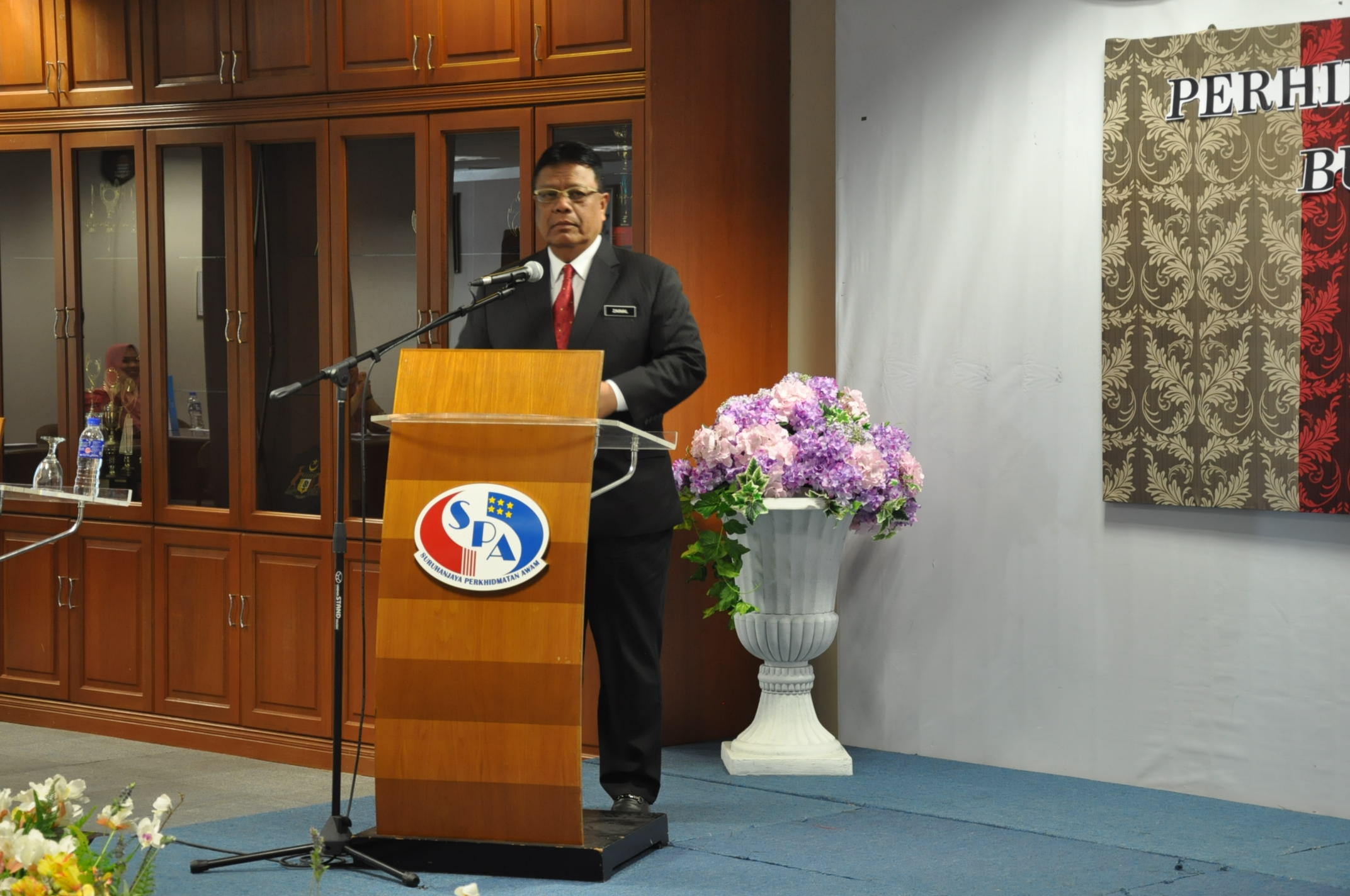 PUTRAJAYA, 25 September ----- Pengerusi SPA, YBhg. Tan Sri Zainal Rahim Seman telah menghadiri majlis Perhimpunan Bulanan bersama warga SPA anjuran Bahagian Naik Pangkat dan Tatatertib. Dalam majlis berkenaan, Pengerusi SPA telah menyampaikan amanat kepada semua warga SPA agar terus menyampaikan perkhidmatan yang terbaik kepada rakyat. Pengerusi SPA juga turut menyampaikan kit SPA kepada pegawai baharu bertukar ke SPA, Anugerah Peminjam Buku Aktif, Penyumbang Buku Terbanyak, surat kenaikan pangkat serta Anugerah Kakitangan Paling Lama Berkhidmat di SPA.