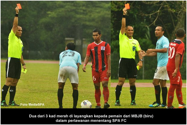 BANGI, 19 Februari ------ Pasukan SPA FC menang 3 – 0 setelah menewaskan pasukan MBJB dalam perlawanan piala FA 2012 yang berlangsung petang semalam di Stadium Mini Petronas, Bangi. Jaringan SPA FC di peroleh pada minit ke-4 melalui tendangan percuma oleh Mohd Zulkifli Affendi, di luar kotak penalti. Jaringan kedua dilakukan oleh Fadzly Iskandar melalui tandukan yang menewaskan penjaga gol MBJB pada minit ke-15. Pasukan MBJB terus dikecewakan dengan jaringan ketiga oleh Mohd Shafiq pada minit ke 25. Pasukan MBJB juga kehilangan 3 pemain kerana dilayangkan kad merah pada separuh masa kedua. Sementara itu, Timbalan Presiden SPA FC, YBhg. Datuk Ramli Juhari yang menyaksikan perlawanan, mengucapkan tahniah kepada pemain-pemain. Beliau yang terus memberi semangat kepada pemain-pemain dan yakin pada perlawanan seterusnya SPA FC pasti boleh memperoleh kemenangan jika prestasi dan semangat berpasukan seperti ini dapat dikekalkan. ------ MediaSPA