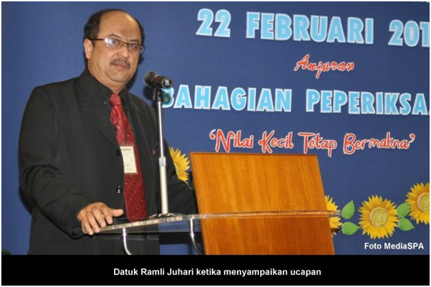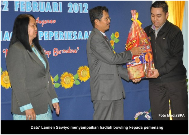SPA, 23 Februari ------ Timbalan Setiausaha (Pengambilan) YBhg. Datuk Ramli Juhari, mengarahkan semua Penolong Setiausaha (PSU) supaya melihat semula e-Rulling dan mengemukakan cadangan penambahbaikan. ”Semua PSU-PSU hendaklah melihat semula e-Rulling atau apa-apa peraturan yang difikirkan perlu diubah dan kemukakan cadangan jika difikirkan perlu dibuat penambahbaikan”. Beliau berkata demikian ketika berucap di Majlis Perhimpunan Bulanan anjuran Bahagian Peperiksaan di Dewan Temu Duga SPA di aras 6, semalam. Turut hadir, Setiausaha SPA, YBhg. Dato’ Lamien Sawiyo, dan Timbalan Setiausaha (Perkhidmatan), Puan Lim Mooi Eia. Terdahulu dari itu dalam ucapannya, beliau meminta supaya pegawai-pegawai bawahan turut melibatkan diri dalam menyumbang idea-idea supaya matlamat organisasi tercapai. Di akhir majlis, YBhg. Dato’ Lamien Sawiyo telah menyampaikan hadiah kepada pemenang-pemenang Pertandingan Bowling Tertutup SPA 2011. ------ MediaSPA
