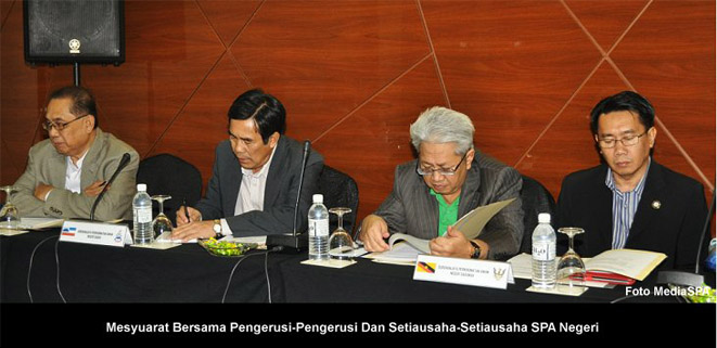 KOTA KINABALU 20 November----- Pengerusi SPA, YBhg. Tan Sri Mahmood Adam malam ini telah mempengerusikan mesyuarat bersama Pengerusi-Pengerusi dan Setiausaha Suruhanjaya-Suruhanjaya Perkhidmatan Awam Malaysia Dan Pentadbiran Negeri di Bawah Bidangkuasa SPA, di Hotel Le Meridien Kota Kinabalu Sabah. Mesyuarat kali ke 3/2012 ini turut di hadiri Setiausaha SPA, YBhg. Datuk Ramli Juhari. Hadir sama, Pengerusi SPA Negeri Sabah YBhg. Datuk Ismail Awang Besar. ----- MediaSPA
