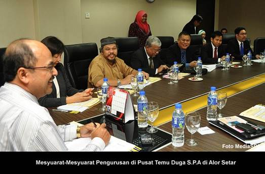 ALOR SETAR 27, April ------ Setiausaha S.P.A, YBhg. Datuk Ramli telah mempengerusikan Mesyuarat Petunjuk Prestasi Utama S.P.A (KPI) yang diadakan di Hotel Holiday Villa Alor Setar, Kedah. Turut hadir Timbalan Setiausaha (Pengambilan), Encik Zainal Abidin Ahmad, Timbalan Setiausaha (Perkhidmatan), Puan Lim Mooi Eia serta pegawai-pegawai kanan. Sementara itu, semalam YBhg. Datuk Ramli Juhari juga mempengerusikan Mesyuarat-mesyuarat Pengurusan yang diadakan di Pusat Temu Duga S.P.A, di Alor Setar, Kedah. ------ MediaSPA
