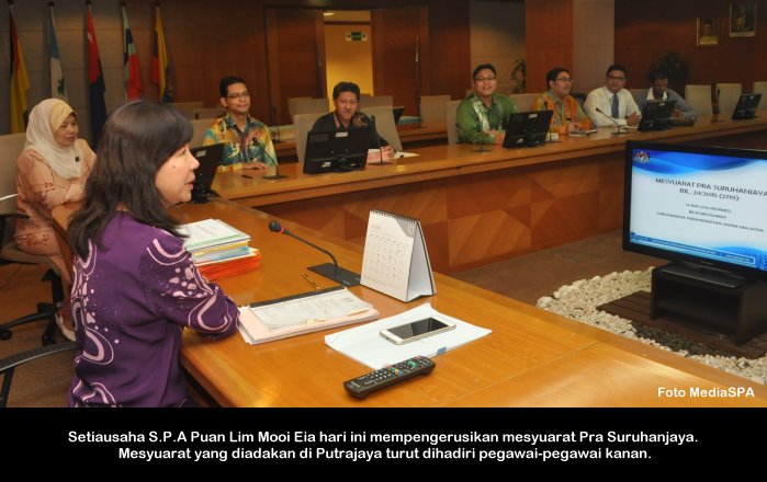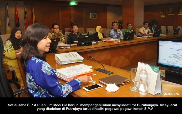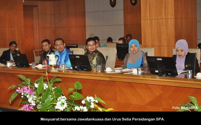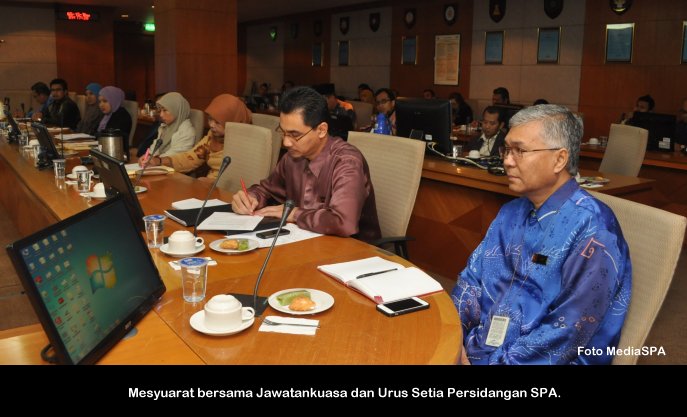 PUTRAJAYA, 15 Mei ------ Setiausaha S.P.A Datuk Ramli Juhari hari ini mengingatkan pegawai-pegawai yang akan bertugas pada Persidangan S.P.A mestilah menjalankan tugas dengan berdisiplin, bekerjasama serta menepati waktu sepanjang persidangan berlangsung. Beliau berkata demikian ketika mengadakan mesyuarat dan perjumpaan bersama jawatankuasa dan urus setia yang akan bertugas pada persidangan itu nanti. Suruhanjaya Perkhidmatan Awam akan mengadakan Persidangan Suruhanjaya-Suruhanjaya Perkhidmatan Awam Malaysia pada 19 hingga 22 Mei 2014 yang akan diadakan di Langkawi. Persidangan kali ke 17 ini akan dirasmikan oleh Menteri Besar Kedah, YAB. Dato' Seri Haji Mukhriz Tun Mahathir. ------ MediaSPA