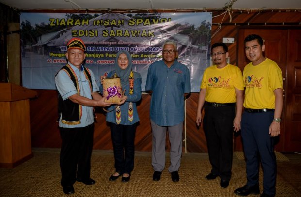 PADAWAN, 11 APRIL --- Pengerusi SPA merangkap Penaung SPAVOL, YBhg. Tan Sri Arpah Abdul Razak telah hadir ke majlis Ziarah Insan SPAVOL Edisi Sarawak yang diadakan di rumah panjang Annah Rais, Padawan, Sarawak. Pada majlis itu seramai 91 orang ibu tunggal dan warga emas telah menerima sumbangan SPA VOLUNTEER (SPAVOL) berupa barangan keperluan harian. Turut hadir Timbalan Pengerusi SPA YBhg. Dato' Sri Zoal Azha Yusof, Ahli-Ahli Suruhanjaya, Setiausaha SPA YBhg. Dato' Zainal Abidin Ahmad serta pegawai-pegawai SPA. ------ MediaSPA
