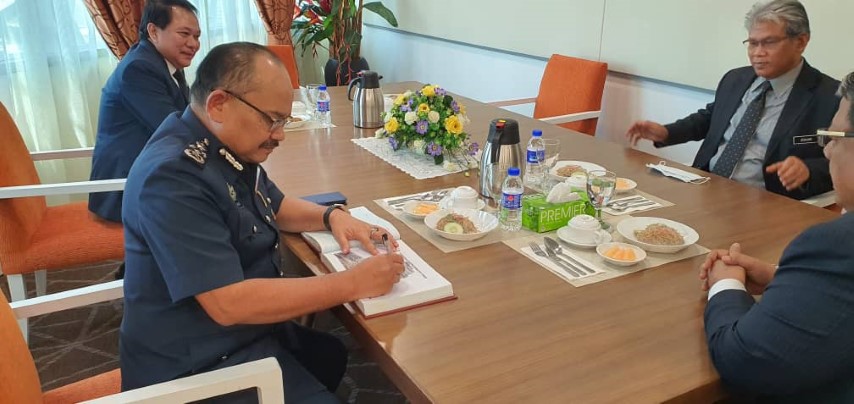 PUTRAJAYA 12 Jun ----- Kunjungan Hormat oleh YBhg.Dato' Abdul Latif bin Abdul Kadir, Ketua Pengarah Kastam Malaysia ke pejabat YBhg.Tan Sri Zainal Rahim bin Seman, Pengerusi Suruhanjaya Perkhidmatan Awam Malaysia telah diadakan pada 12 Jun 2020 (Jumaat) bersamaan 20 Syawal 144H bertempat di Pejabat Pengerusi SPA.