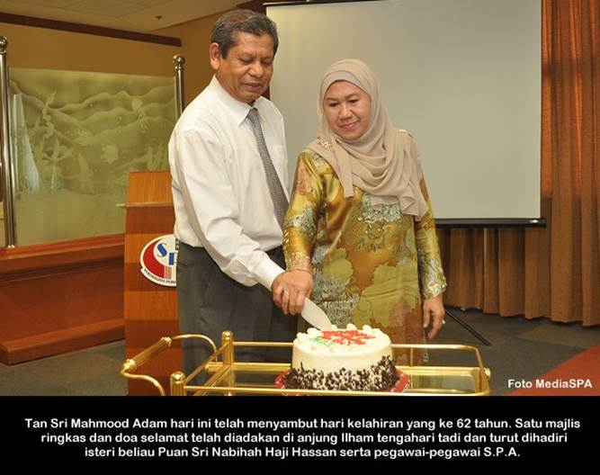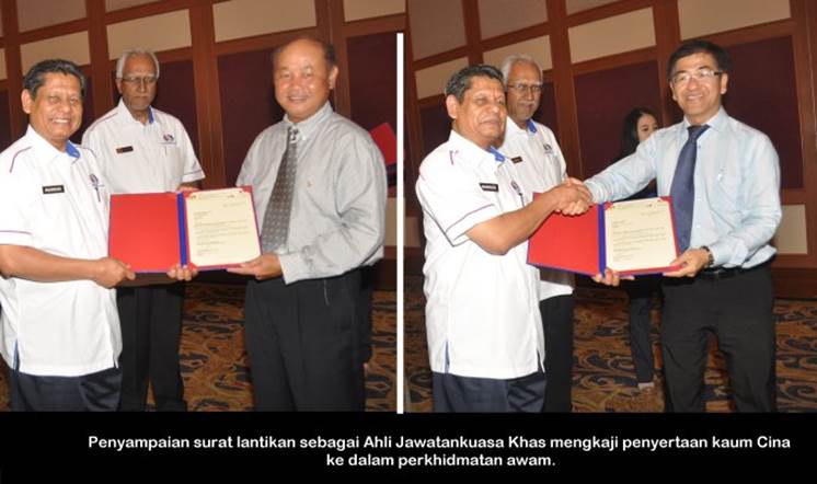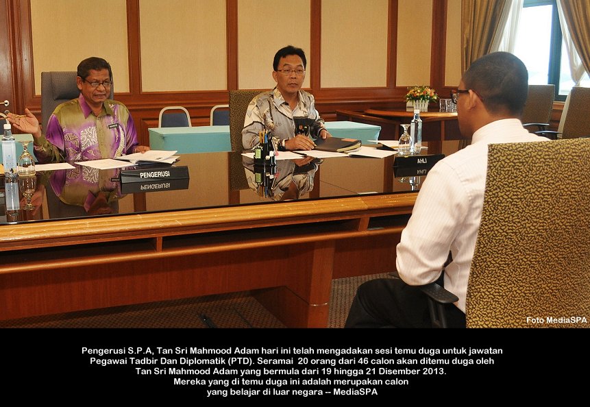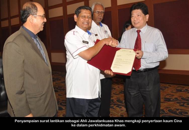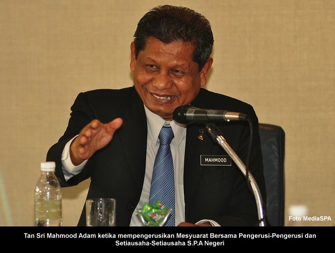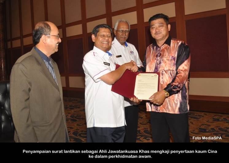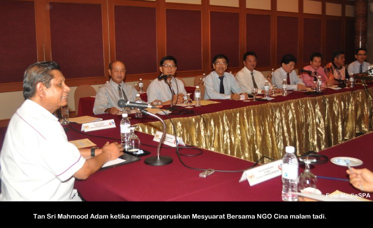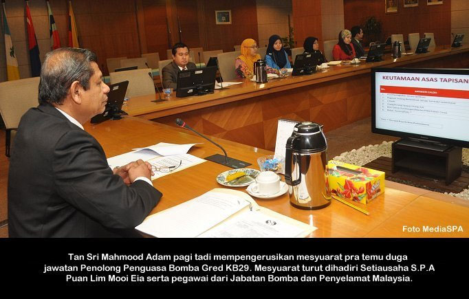 S.P.A, 18 Mei ------ Pengerusi S.P.A, YBhg. Tan Sri Mahmood Adam telah mempengerusikan Mesyuarat Jawatankuasa Khas bersama NGO Cina bagi mengkaji penyertaan kaum Cina dalam sektor awam. Mesyuarat kali kedua diadakan pada tahun ini telah di adakan di bilik Mesyuarat Suruhanjaya. Turut hadir, Timbalan Pengerusi S.P.A, YBhg. Dato' R. Segarajah, Ahli Suruhanjaya dan Setiausaha S.P.A, YBhg. Datuk Ramli Juhari . Antara perkara yang dibincangkan adalah mengenai inisiatif S.P.A untuk meningkatkan permohonan dari kaum Cina dalam perkhidmatan Awam seperti iklan kekosongan jawatan S.P.A terus di diiklankan di akhbar-akhbar utama berbahasa Cina dan satu rancangan khas mengenai S.P.A disiarkan di stesyen TV berbahasa Cina. ------  MediaSPA