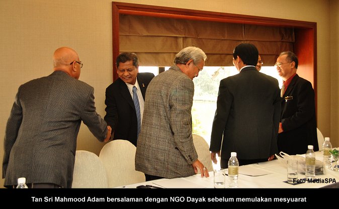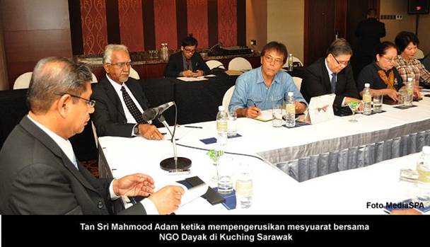 KUCHING, 24 JUN ------ Pengerusi S.P.A Tan Sri Mahmood Adam sebentar tadi mengadakan perjumpaan dan mempengerusikan Mesyuarat bersama NGO Melayu. Seramai lapan (8) orang wakil dari NGO Melayu hadir antaranya MTW PBB Sarawak, YAKIN, Persatuan Melayu Kuching, ABIM, Pemuda PBB, Pekida Malaysia, Persatuan Kebangsaan Melayu Sarawak, Ikram Sarawak dan HIKMAH. Hadir sama Setiausaha S.P.A Datuk Ramli Juhari. Mesyuarat diadakan di Hotel Riverside Majestic Kuching. ------ MediaSPA