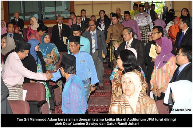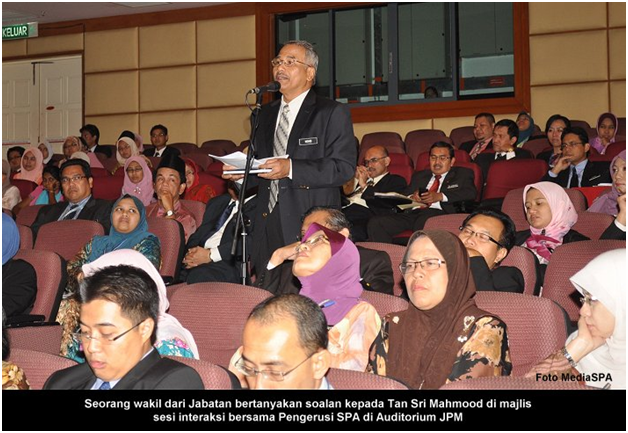 PUTRAJAYA 13 Julai ------Suruhanjaya Perkhidmatan Awam Malaysia (SPA) telah mengadakan Sesi Interaksi Pengerusi SPA Bersama Kementerian, Jabatan dan Pentadbiran Kerajaan Negeri di bawah bidang kuasa SPA. Majlis yang di adakan di Auditorium JPM petang semalam dihadiri oleh Pengerusi SPA, YBhg. Tan Sri Mahmood Adam. Hadir sama Setiausaha SPA, YBhg. Dato’ Lamien Sawiyo, Timbalan Setiausaha (Pengambilan) YBhg. Datuk Ramli Juhari, Timbalan Setiausaha (Perkhidmatan) Puan Lim Mooi Eia dan pegawai-pegawai kanan SPA. Sesi interaksi yang dihadiri oleh wakil-wakil Kementarian dan Jabatan ini adalah sesi yang ke dua di adakan di Putrajaya setelah ia diadakan pada 8 Jun 2012 yang lalu. ------ MediaSPA