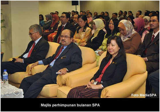 S.P.A, 28 Februari ------ Setiausaha Suruhanjaya Perkhidmatan Awam Malaysia (S.P.A), YBhg. Datuk Ramli Juhari berkata, S.P.A kini pada tahap prestasi baik kerana tidak menerima aduan sehingga memudaratkan dan terpaksa menjelaskan kepada Kabinet atau Parlimen yang boleh menyebabkan imej S.P.A tercalar. Menurutnya lagi, beliau meminta agar warga S.P.A mengekalkan kecemerlangan seperti tahun-tahun yang lepas. Beliau berkata demikian di Majlis Perhimpunan Bulanan anjuran Bahagian Pengurusan Maklumat yang diadakan di Dewan Temu duga semalam. Turut hadir Timbalan Setiausaha (Pengambilan), Encik Zainal Abidin Ahmad, Timbalan Setiausaha (Perkhidmatan), Puan Lim Mooi Eia, pegawai-pegawai kanan serta warga S.P.A. Terdahulu dari itu beliau berkata, dengan kemudahan teknologi terkini, warga S.P.A diingatkan agar tidak menyebarkan sebarang maklumat yang salah kepada orang luar. YBhg. Datuk Ramli juga mengingatkan kepada pegawai yang terlibat memaklumkan mengenai keputusan temu duga supaya menepati tarikh keputusan seperti yang dijanjikan, supaya calon tidak tertanya-tanya atau menunggu terlalu lama. Beliau juga mengucapkan tahniah kepada warga S.P.A yang mendapat kenaikan pangkat dan meraih kejayaan dalam sukan anjuran PASPA. ------ MediaSPA