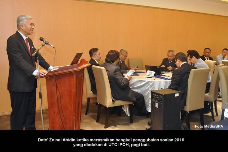 IPOH, 27 September------ Suruhanjaya Perkhidmatan Awam Malaysia (SPA) hari ini telah mengadakan Bengkel Penggubalan Soalan 2016 yang diadakan di Pusat Transformasi Bandar (UTC) Ipoh Perak. Majlis perasmian telah disempurnakan oleh Setiausaha SPA, YBhg. Dato’ Zainal Abidin Ahmad. Turut hadir Timbalan Setiausaha (Perkhidmatan) Puan Salmah Idris, Timbalan Setiausaha (Pengambilan) Tuan Haji Abdullah Tahir, Ahli-Ahli Suruhanjaya dan pegawai-pegawai-pegawai kanan SPA. Bengkel penggubalan soalan pada kali ini turut menjemput wakil-wakil dari Kementerian/Jabatan serta pegawai dari Universiti Pendidikan Sultan Idris (UPSI). ------ MediaSPA