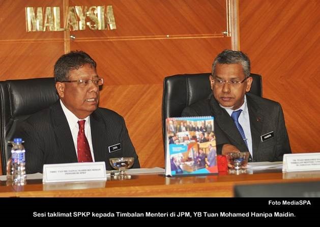 PUTRAJAYA 16 Jan ----- Suruhanjaya Perkhidmatan Kehakiman Dan Perundangan (SPKP) hari ini telah menyampaikan taklimat kepada Timbalan Menteri Di Jabatan Perdana Menteri (Undang-Undang) Yang Berhormat Tuan Mohamed Hanipa Maidin. Ketibaan YB Timbalan Menteri itu disambut oleh Pengerusi SPKP, Tan Sri Zainal Rahim Seman. Hadir sama Setiausaha SPKP, Dato’ Zainal Abidin Ahmad, Peguam Cara Negara, YM Datuk Engku Nor Faizah Engku Atek, Timbalan Setiausaha (Perkhidmatan) Tuan Haji Ikhbal Hanam Mukras, Urus Setia SPKP, pegawai-pegawai kanan SPA dan pegawai-pegawai kanan pejabat Timbalan Menteri di JPM.----- MediaSPA