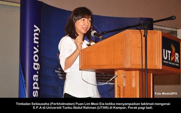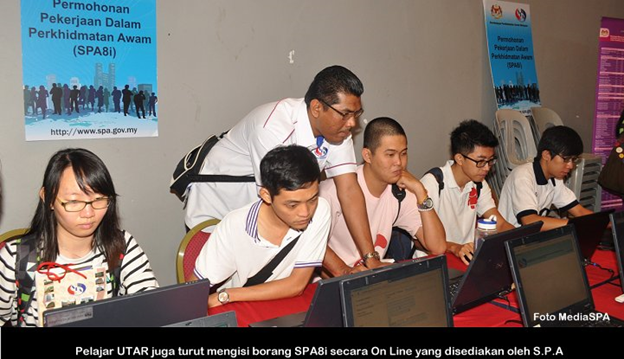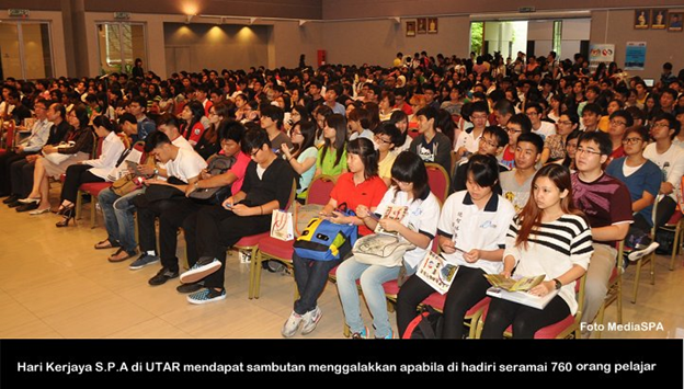 KAMPAR, Perak, 6 Nov ------ Suruhanjaya Perkhidmatan Awam (S.P.A) hari ini telah mengadakan Hari Kerjaya yang diadakan di Universiti Tunku Abdul Rahman (UTAR), Kampar, Perak. Hari Kerjaya yang diadakan ini adalah khusus untuk memberi pendedahan kepada graduan UTAR mengenai S.P.A dan peluang kerjaya dalam perkhidmatan awam. Seramai 760 orang pelajar hadir dan mendengar taklimat yang disampaikan oleh Timbalan Setiausaha (Perkhidmatan), Puan Lim Mooi Eia dan Penolong Setiausaha Bahagian Pengambilan Khas, Cik Neo Su Bing. Satu sesi “Mock Interview” turut diadakan dan dipengerusikan oleh Ahli Suruhanjaya iaitu Encik Boon Jon Lin dan juga Pegawai Tugas-tugas Khas iaitu YBhg. Ir. Lee Soon Jin dan Puan Thoong Lay Chooi. Terdahulu dari itu Presiden UTAR, YBhg. Ir Prof Dato’ Dr. Chuah Hean Teik menyampaikan ucapan alu-aluan dan beliau mengucapkan terima kasih kepada S.P.A kerana sudi mengadakan hari kerjaya untuk para pelajarnya. ------ MediaSPA