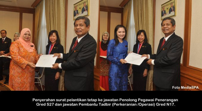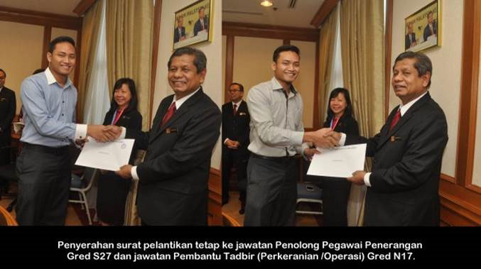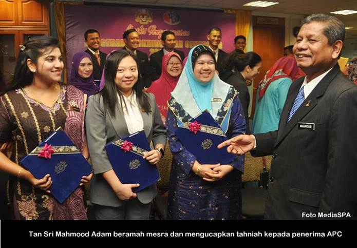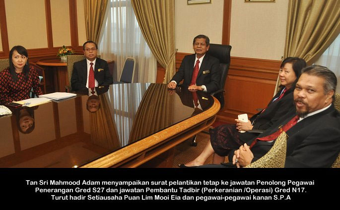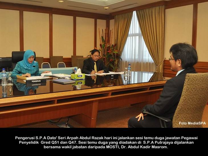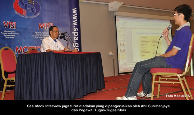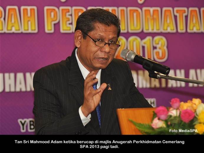 Putrajaya, 24 Disember ------ Pengerusi S.P.A, YBhg. Tan Sri Mahmood Adam berkata keputusan temu duga bagi jawatan Pegawai Tadbir Dan Diplomatik (PTD) dan juga jawatan Pemeriksa Kapal Terbang akan diumumkan oleh S.P.A pada hari ini. Beliau berkata demikian di Majlis Anugerah Perkhidmatan Cemerlang (APC) 2013 Suruhanjaya Perkhidmatan Awam. Katanya lagi, keputusan ini boleh diketahui secara online di Portal S.P.A mulai malam ini. YBhg. Tan Sri Mahmood Adam juga berkata, S.P.A akan menganjurkan seminar kepada calon-calon dalam membuat persediaan untuk menghadapi urusan Peperiksaan, Assessment Centre dan Temu Duga memasuki Perkhidmatan Awam. Turut hadir di majlis APC, Timbalan Pengerusi S.P.A, YBhg. Dato’ R. Segarajah, Setiausaha S.P.A, YBhg. Datuk Ramli Juhari pegawai-pegawai kanan serta warga S.P.A. Pada tahun ini seramai 42 orang warga S.P.A telah menerima Anugerah Perkhidmatan Cemerlang. Majlis telah diadakan di Dewan Temu duga Aras 6, S.P.A Putrajaya ------ MediaSPA