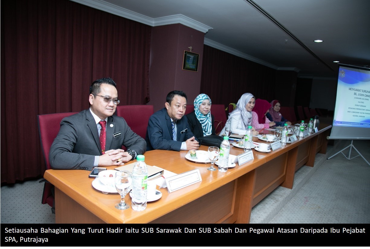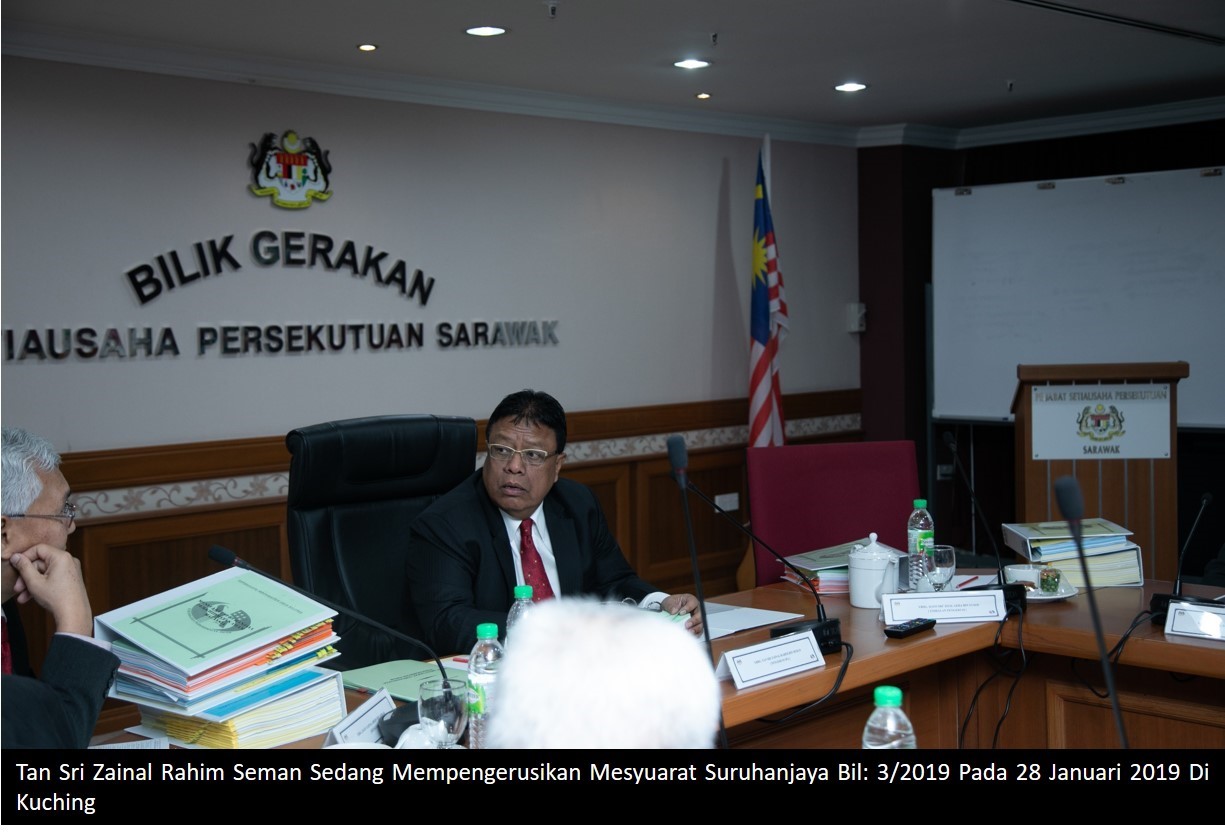 KUCHING 28 Jan ----- Suruhanjaya Perkhidmatan Awam Malaysia dengan kerjasama Urusetia Cawangan Sarawak telah mengadakan Mesyuarat Suruhanjaya Bil. 3/2019. Mesyuarat berlangsung di Bilik Gerakan, Pejabat Setiausaha Persekutuan Sarawak, Bangunan Sultan Iskandar, Kuching Sarawak. Mesyuarat telah dipengerusikan oleh Pengerusi SPA, YBhg. Tan Sri Zainal Rahim Seman, mesyuarat tersebut juga turut dihadiri oleh Timbalan Pengerusi, Dato' Sri Zoal Azha Yusof, Ahli-Ahli Suruhanjaya, Setiausaha Dato' Zainal Abidin Ahmad serta pegawai-pegawai kanan SPA.