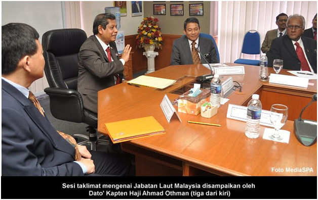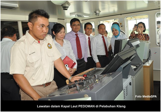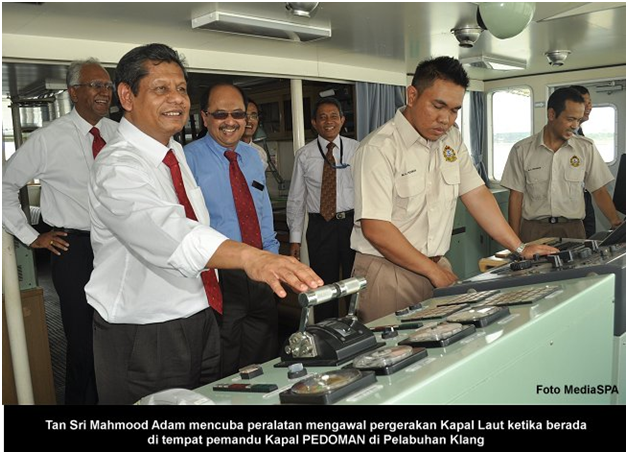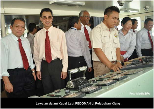 KLANG, 21 Januari ------ Suruhanjaya Perkhidmatan Awam Malaysia (S.P.A.) hari ini telah membuat lawatan kerja ke Jabatan Laut Malaysia di Klang, Selangor. Lawatan kerja yang diketuai oleh Pengerusi SPA, YBhg. Tan Sri Mahmood Adam adalah bersempena dengan Mesyuarat Suruhanjaya yang diadakan di Jabatan tersebut. Turut hadir, Timbalan Pengerusi S.P.A, YBhg. Dato' R. Segarajah, Ahli-Ahli Suruhanjaya, Setiausaha S.P.A, YBhg. Datuk Ramli Juhari, Timbalan Setiausaha (Perkhidmatan) Puan Lim Mooi Eia, Timbalan Setiausaha (Pengambilan) Encik Zainal Abidin Ahmad dan pegawai-pegawai kanan S.P.A. Taklimat mengenai Jabatan Laut turut disampaikan oleh Ketua Pengarah Jabatan Laut Malaysia, YBhg. Dato' Kapten Haji Ahmad Othman. Rombongan turut juga di bawa melawat ke Pusat Operasi Vessel Traffic System (VTS). Seterusnya rombongan dibawa melawat ke sekitar pelabuhan dengan menaiki Kapal Laut PEDOMAN. ------ MediaSPA