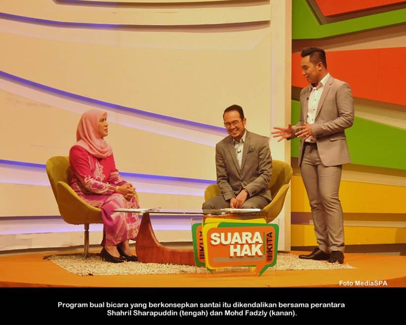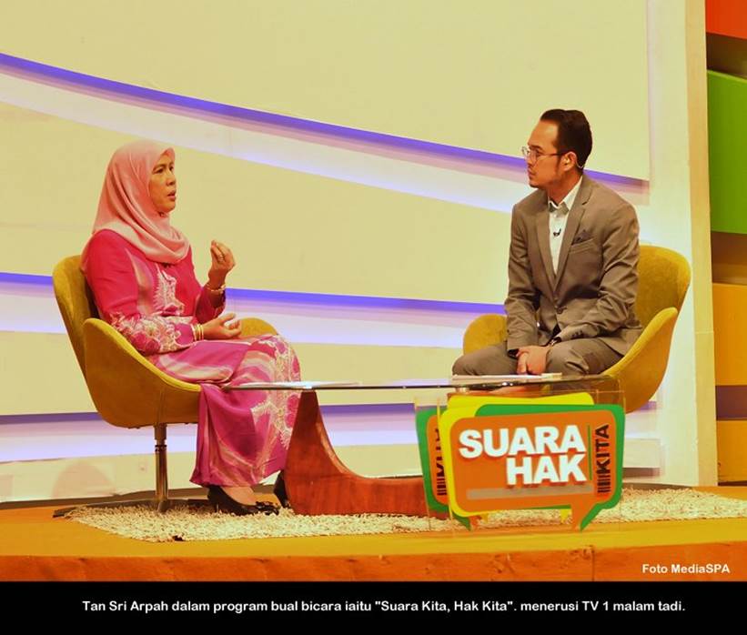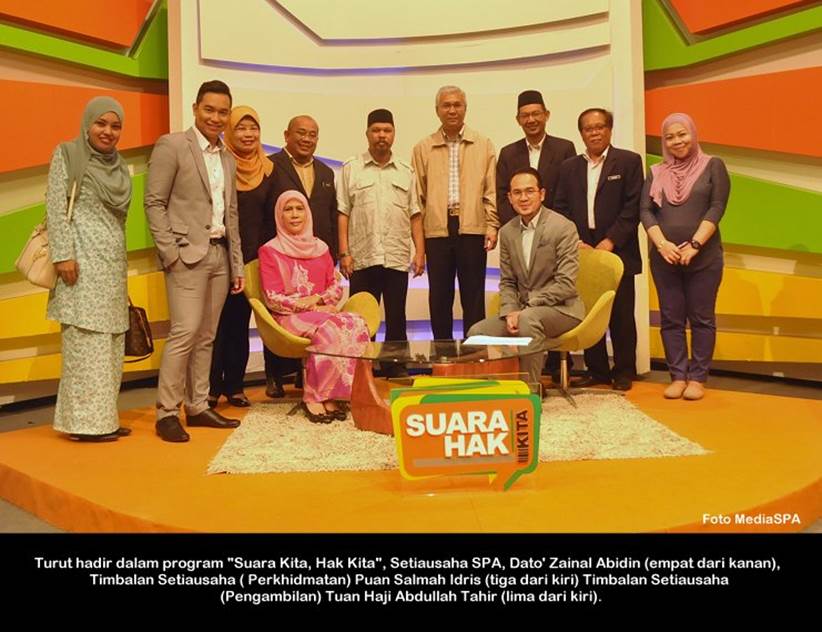KUALA LUMPUR, 10 Oktober ------ Pengerusi Suruhanjaya Perkhidmatan Awam Malaysia (SPA), YBhg. Tan Sri Arpah Abdul Razak malam tadi muncul dalam satu program bual bicara terbitan Radio Televisyen Malaysia (RTM) iaitu "Suara Kita, Hak Kita". Program selama 60 minit bermula jam 9.00 malam itu dikendalikan bersama perantara Shahril Sharapuddin dan Mohd Fadzly yang membawa tajuk Peperiksaan Dalam Talian. Antara topik yang dikupas oleh Pengerusi SPA mengenai peperiksaan dalam talian itu ialah memudahkan calon-calon mengambil peperiksaan walau di mana calon itu berada asalkan mempunyai kemudahan internet dan juga penjimatan pihak kerajaan berbanding peperiksaan secara konvensional. Program bual bicara yang berkonsepkan santai itu turut menerima panggilan telefon dan pertanyaan di Facebook daripada orang ramai yang mengikuti program tersebut secara langsung menerusi TV1. ------ MediaSPA