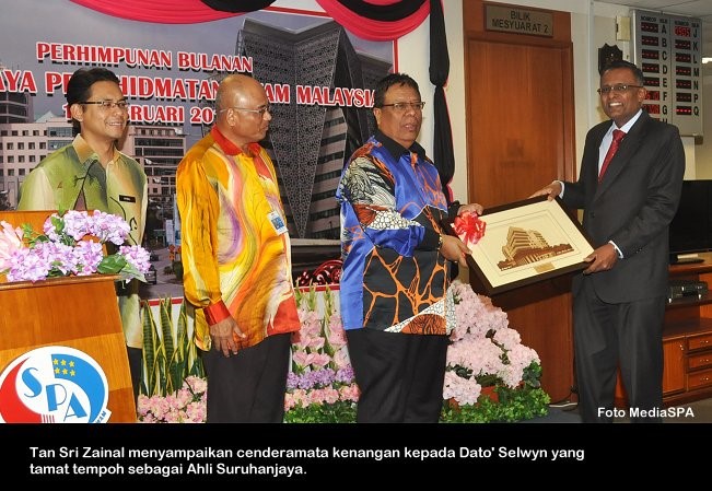 PUTRAJAYA 14 Feb ----- Encik Zohari Said daripada Kementerian Kesihatan Malaysia (KKM) diumum sebagai Setiausaha Suruhanjaya Perkhidmatan Awam Malaysia (SPA) yang baharu menggantikan Dato’ Zainal Abidin Ahmad yang bersara wajib mulai hari ini. Pengumuman itu dibuat oleh Dato’ Zainal pada majlis perhimpunan bulanan SPA di Putrajaya petang semalam. Turut hadir Pengerusi SPA, Tan Sri Zainal Rahim Seman, Ahli Suruhanjaya serta pegawai-pegawai kanan dan warga SPA. Pada majlis itu juga Tan Sri Zainal menyampaikan kit kepada kakitangan baharu yang bertugas di SPA serta cenderamata kepada Dato’ Selwyn yang tamat perkhidmatan sebagai Ahli Suruhanjaya ----- MediaSPA