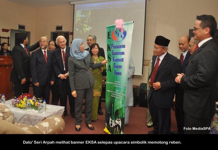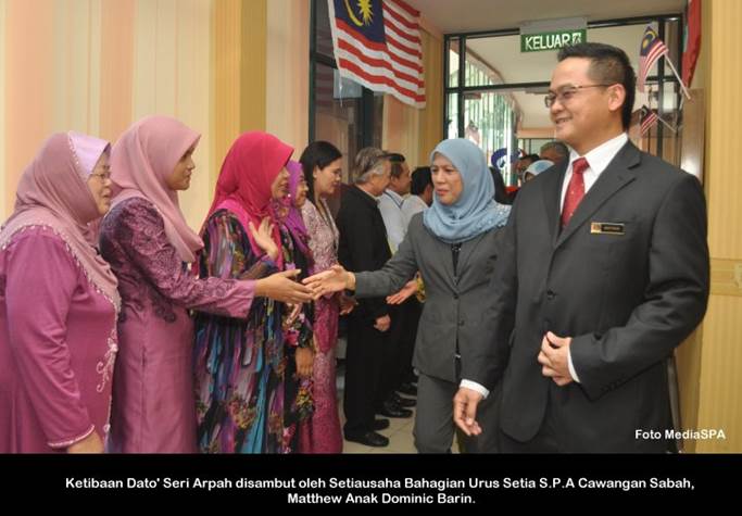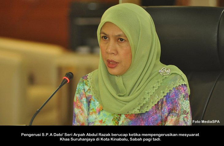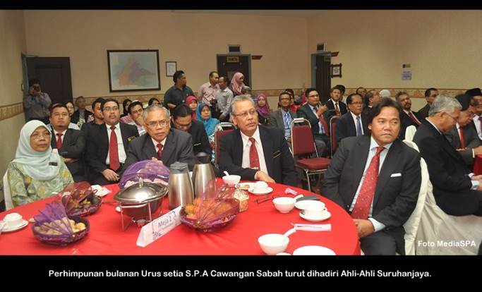 KUCHING, 9 Sept ------ Pengerusi S.P.A, Dato’ Seri Arpah Abdul Razak mengingatkan warga S.P.A supaya jangan terlalu mudah meruntuhkan moral diri sendiri dengan secara sengaja atau tidak sengaja melalui sosial media. Beliau berkata demikian di majlis perhimpunan bulanan anjuran urus setia S.P.A Cawangan Sabah, di Kota Kinabalu petang semalam. Tambahnya lagi kita sebagai penjawat awam juga mestilah setia kepada kerajaan semasa yang memerintah. “Jangan menokok tambah isu-isu yang boleh menjejaskan perkhidmatan awam atau kerajaan yang sengaja direka oleh pihak-pihak tertentu yang tidak bertanggungjawab” tegasnya. Di akhir majlis, Dato’ Seri Arpah telah melancarkan Ekosistem Kundusif Sektor Awam (EKSA) peringkat S.P.A.  ------  MediaSPA
