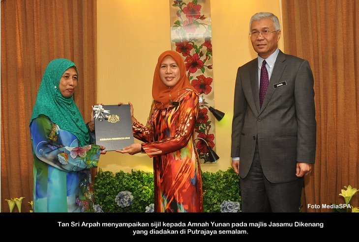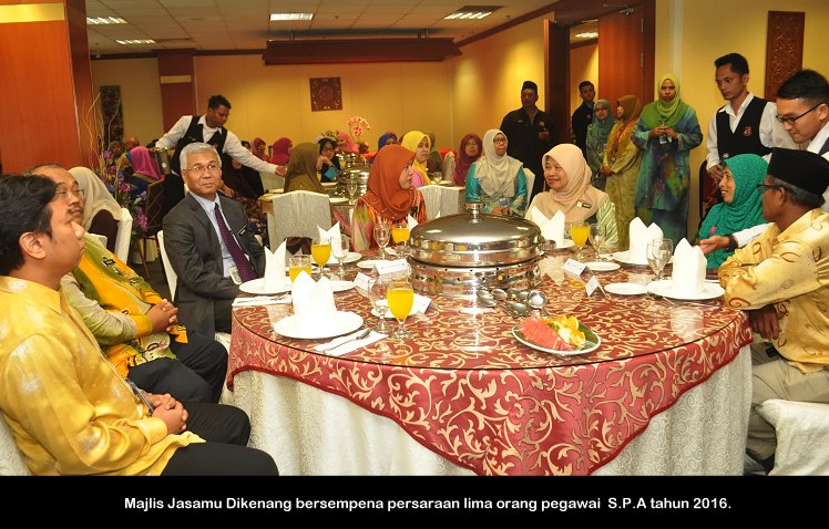 PUTRAJAYA, 17 November ------ Pengerusi Suruhanjaya Perkhidmatan Awam Malaysia , YBhg. Tan Sri Arpah Abdul Razak hadir ke Majlis Jasamu Dikenang sempena persaraan lima (5) orang pegawai SPA yang bersara wajib sepanjang tahun ini. Majlis yang diadakan di Anjung Ilham turut dihadiri Setiausaha SPA, YBhg. Dato’ Zainal Abidin Ahmad, Timbalan Setiausaha (Perkhidmatan), Puan Salmah Idris serta pegawai-pegawai SPA. Dalam ucapan yang disampaikan oleh Pengerusi SPA kepada pesara diantaranya adalah supaya memanfaatkan persaraan ini dengan sebaiknya dan berehat secara sihat serta meluangkan masa yang berkualiti bersama keluarga tersayang . Beliau juga turut mengingatkan betapa pentingnya mengawal pemakanan dan menjaga kesihatan. Di akhir majlis, YBhg. Tan Sri Arpah menyampaikan sijil dan cenderamata kenangan daripada SPA.  ------  MediaSPA