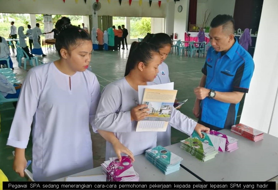 14 Mac 2019 (Khamis) ----- Suruhanjaya Perkhidmatan Awam Malaysia Cawangan Sarawak telah mengadakan Program Pameran Kerjaya sempena penyampaian Keputusan Sijil Pelajaran Malaysia (SPM) di empat(4) buah Sekolah yang terpilih iaitu SMK Seri Setia Tabuan Jaya Kuching, SMK Tun Abdul Razak Siburan Kuching, SMK Sadong Jaya Samarahan dan di SMK Sematan, Lundu. Tujuan program ini diadakan adalah untuk memberi maklumat kepada pelajar sekolah berkaitan peluang kerjaya di dalam sektor awam apabila mereka menamatkan persekolahan nanti. Encik Matthew Anak Dominic Barin (SUB SK) turut hadir bersama ke beberapa buah sekolah yang terlibat dan memberi penerangan dan tips serta panduan untuk memasuki Perkhidmatan Awam kepada pelajar-pelajar yang melawat ke Booth pameran SPA Malaysia Cawangan Sarawak. Beberapa orang kakitangan dari SPA Malaysia Cawangan Sarawak juga turut terlibat dalam penganjuran program ini. Anggaran seramai 500 lebih pelajar yang terlibat dalam program kali ini.