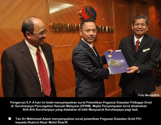 PERLIS, 18 Nov ------ Pengerusi S.P.A, YBhg. Tan Sri Mahmood Adam hari ini telah membuat kunjungan hormat ke atas Menteri Besar Perlis, YAB. Azlan Man. Turut bersama dalam kunjungan hormat tersebut, Setiausaha S.P.A, YBhg. Datuk Ramli Juhari dan Pegawai Tugas-tugas Khas, YBhg. Datuk Salim Hashim dan Datuk Mustapha Ahmad S. Marican. Terdahulu dari itu pada pagi tadi YBhg. Tan Sri Mahmood Adam telah mempengerusikan Mesyuarat Suruhanjaya yang diadakan di Kompleks Unit Pencegah Penyeludupan Bukit Kayu Hitam, Kedah. Satu taklimat turut diadakan yang disampaikan oleh Komander UPP Negeri Kedah iaitu Tuan Abdul Latif Abdul Rahman. Pada sebelah malam pula, Pengerusi S.P.A telah menyertai kursus Competency Based Interview (CBI) dan seterusnya mempengerusikan mesyuarat bersama Pengerusi-Pengerusi dan Setiausaha-Setiausaha SPA Negeri di Hotel Seri Malaysia Kangar, Perlis. ------  MediaSPA