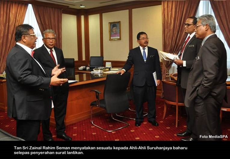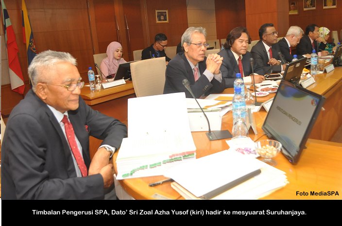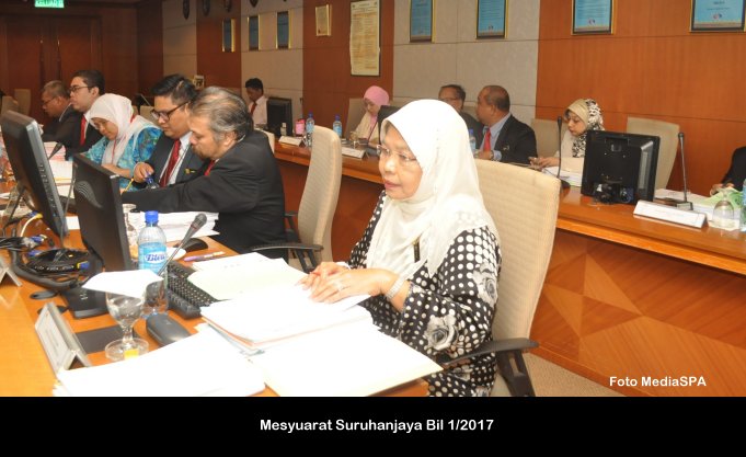 PUTRAJAYA, 09 Januari ----- Suruhanjaya Perkhidmatan Awam Malaysia (SPA) telah mengadakan Mesyuarat Suruhanjaya yang pertama bagi tahun 2017 (Bil 1/2017) bertempat di Ibu Pejabat SPA Putrajaya. Mesyuarat yang bermula jam 9.00 pagi dipengerusikan oleh YBhg. Tan Sri Arpah Abdul Razak. Mesyuarat turut dihadiri Timbalan Pengerusi SPA, YBhg. Dato’ Sri Zoal Azha Yusof, Ahli-Ahli Suruhanjaya, Setiausaha SPA, YBhg. Dato’ Zainal Abidin Ahmad, Timbalan Setiausaha (Perkhidmatan), Puan Salmah Idris, Timbalan Setiausaha (Pengambilan) Tuan Haji Abdullah Tahir dan pegawai-pegawai kanan SPA. Mesyuarat membincangkan dan menimbangkan kertas-kertas berkaitan dengan urusan pengambilan, perkhidmatan, naik pangkat dan tatatertib. MediaSPA
