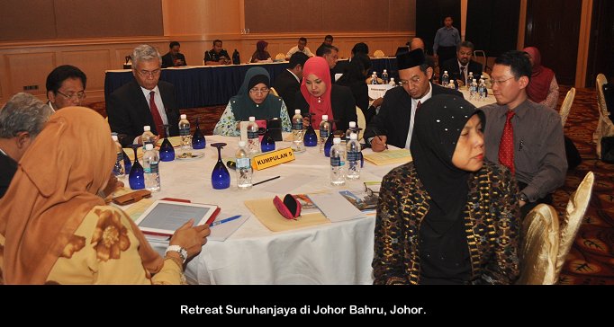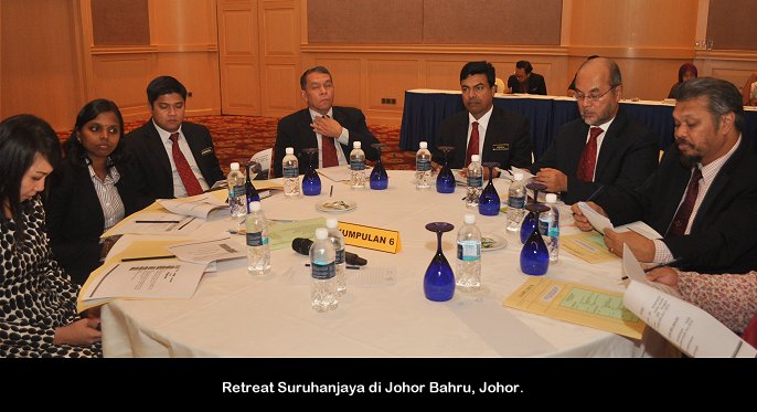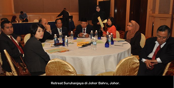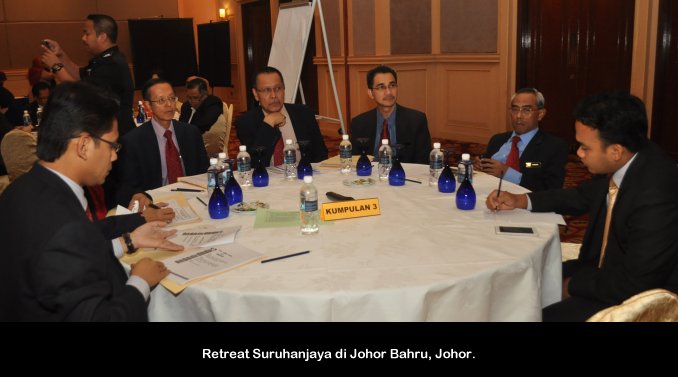Johor Baru, 18 Nov ------ Pengerusi S.P.A Tan Sri Mahmood Adam hari ini merasmikan retreat Suruhanjaya yang diadakan di Johor Bahru Johor. Turut hadir Timbalan Setiausaha Dato’ R.Segarajah, Ahli-Ahli Suruhanjaya serta pegawai-pegawai S.P.A. Retreat yang bermula semalam akan diadakan selama tiga (3) hari di sini. ------ MediaSPA