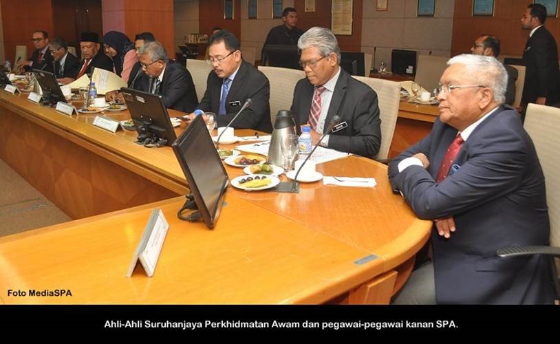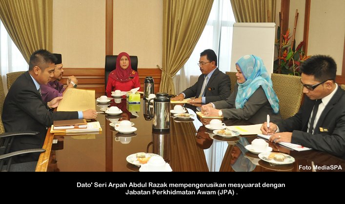 PUTRAJAYA, 20 Nov------ Pengerusi S.P.A Dato’ Seri Arpah Abdul Razak mempengerusikan mesyuarat bersama Jabatan Perrkhidmatan Awam (JPA). Mesyuarat yang bermula sebentar tadi dihadiri Timbalan Ketua Pengarah Perkhidmatan Awam (Pembangunan), Dato’ Jalil Marzuki. Turut hadir Timbalan Setiausaha (Pengambilan) Tuan Haji Abdullah Tahir. ------MediaSPA