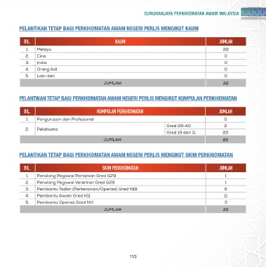 PELANTIKAN TETAP BAGI PERKHIDMATAN AWAM NEGERI PERLIS MENGIKUT KAUM