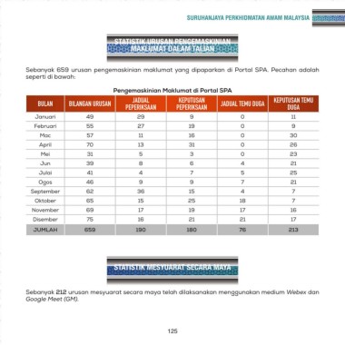 Sebanyak 659 urusan pengemaskinian maklumat yang dipaparkan di Portal SPA. Pecahan adalah