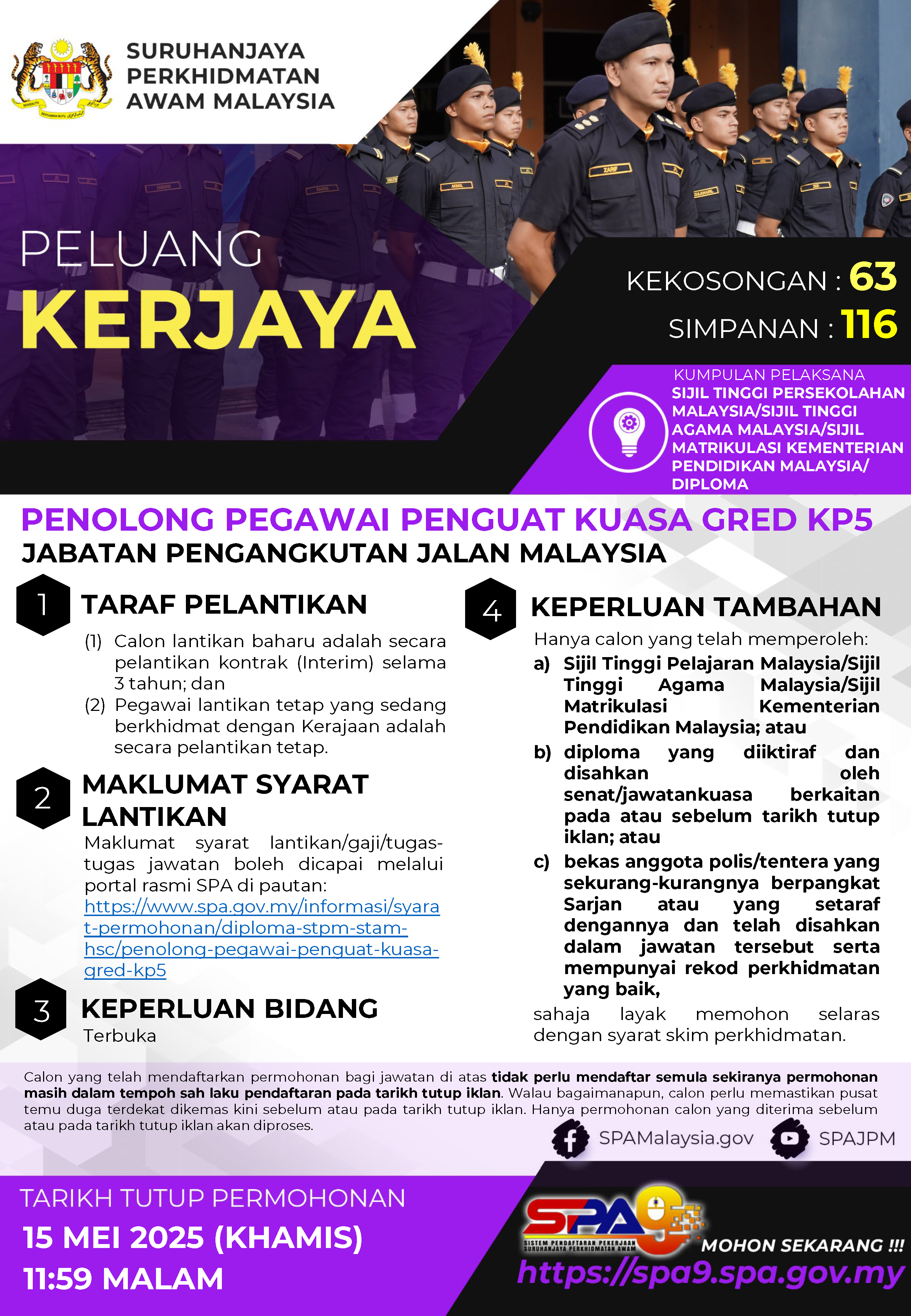 Tarikh tutup permohonan : 17 Disember 2025 (Rabu), jam 11.59 malam