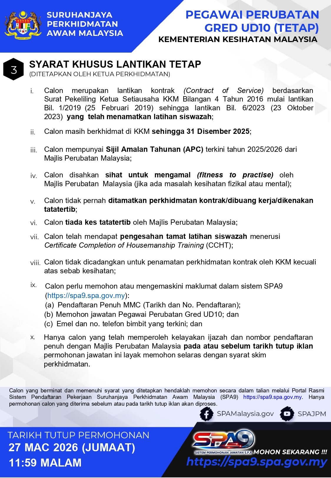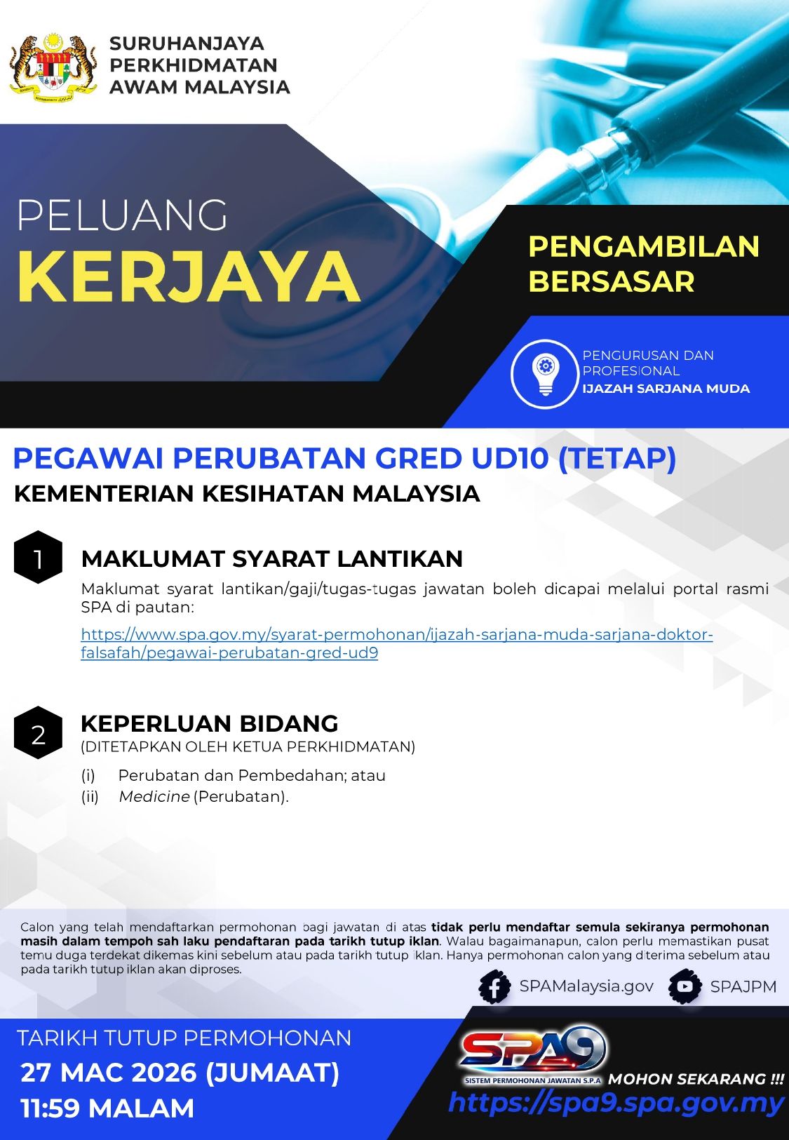 Tarikh tutup permohonan : 27 Mac 2026 (JUMAAT) 11:59 MALAM