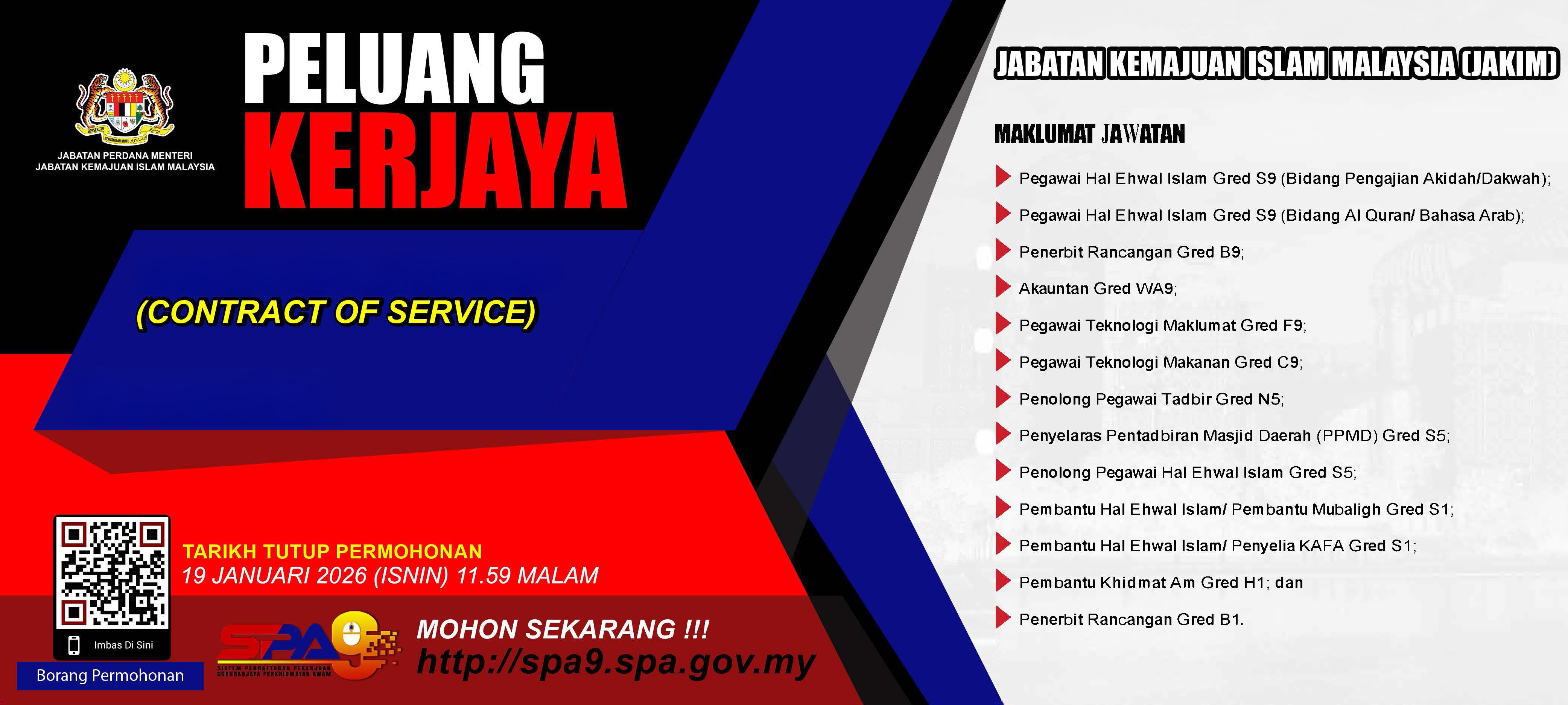 Tarikh tutup permohonan : 19 Januari 2026 (Isnin) jam 11.59 malam.
