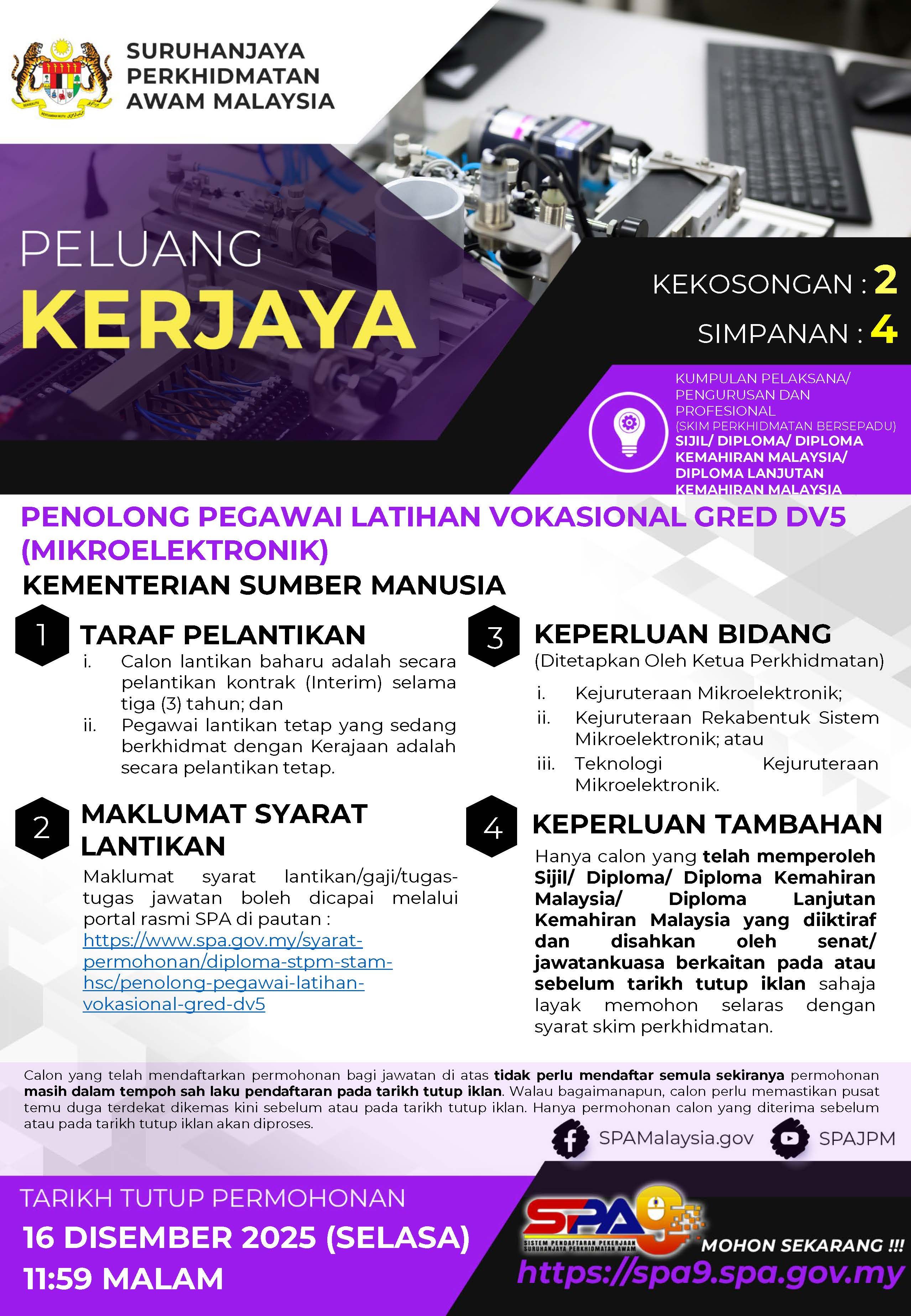 Tarikh tutup permohonan : 17 Disember 2025 (Rabu), jam 11.59 malam