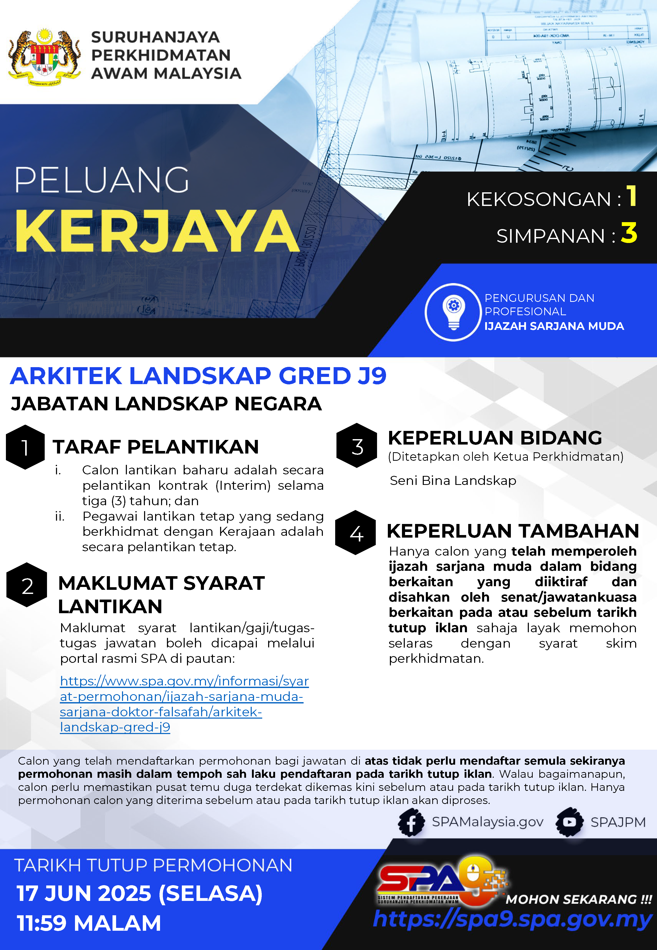 Tarikh tutup permohonan : 18 Disember 2025 (Khamis), jam 11.59 malam