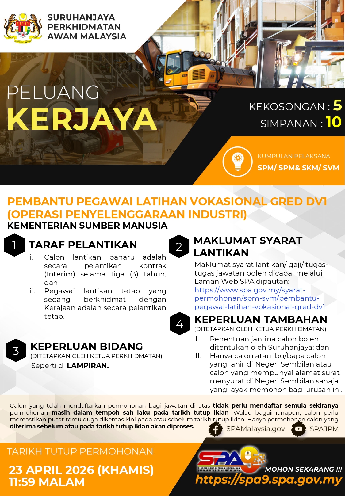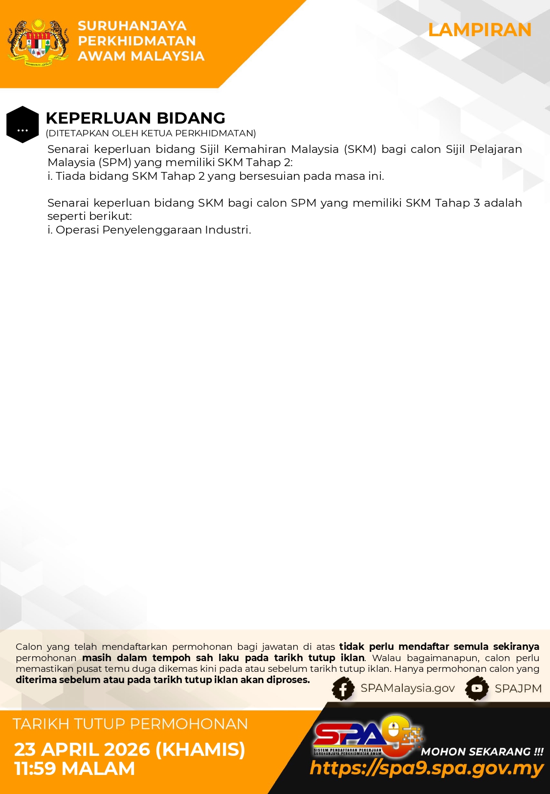 Tarikh tutup permohonan : 23 April 2026 (Khamis), jam 11.59 malam