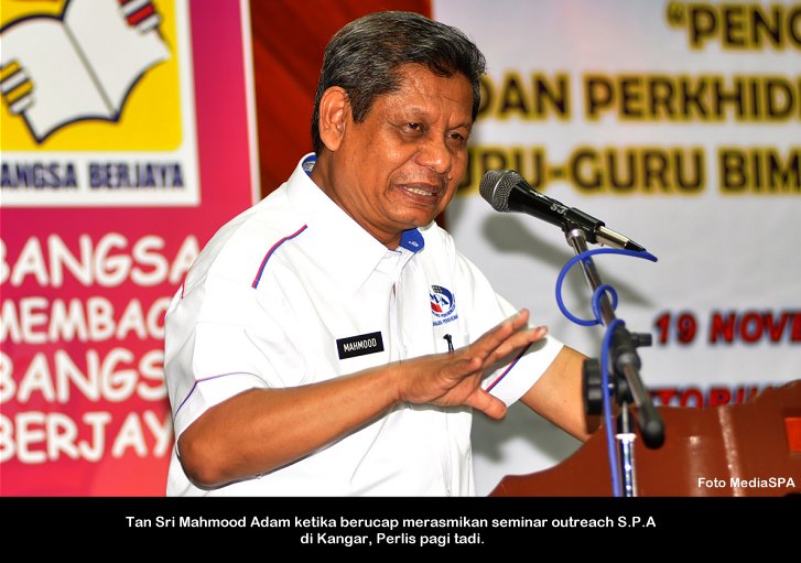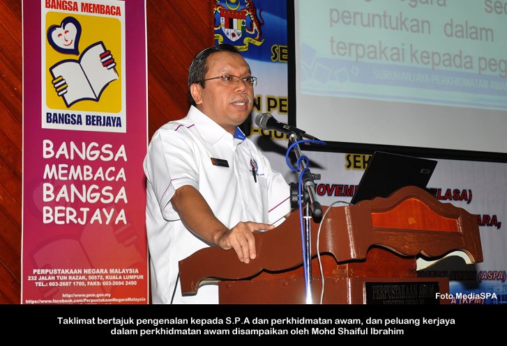 PERLIS, 19 Nov ------ Suruhanjaya Perkhidmatan Awam (S.P.A) hari ini telah mengadakan Seminar Outreach, Pengenalan S.P.A kepada guru-guru bimbangan dan kaunseling sekolah peringkat negeri Perlis. Seminar yang diadakan di Auditorium Perpustakaan Negeri, Kangar, Perlis itu dirasmikan oleh Pengerusi S.P.A YBhg. Tan Sri Mahmood Adam. Dua semi taklimat telah disampaikan oleh Setiausaha Bahagian Pengambilan Khas, Encik Mohd. Shaiful Ibrahim. Seminar anjuran Akademi Suruhanjaya Perkhidmatan Awam (ASPA) ini turut menjemput wakil dari Jabatan Pendidikan Negeri Perlis untuk menyampaikan taklimat mengenai pelaksanaan e-Profiling. ------  MediaSPA