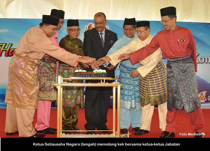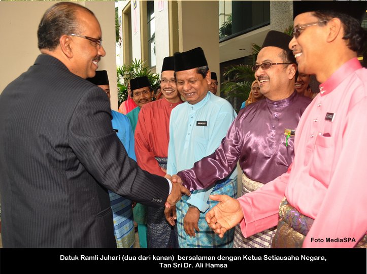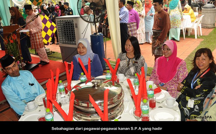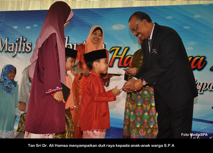 PUTRAJAYA, 23 Ogos  ------  Ketua Setiausaha Negara YBhg. Tan Sri Dr. Ali Hamsa telah bersama warga Kompleks C, Putrajaya hari ini di Majlis Sambutan Hari Raya Aidilfitri 2013 . Majlis yang diadakan di dataran Kompleks C pagi ini turut dihadiri Ketua Pengarah Perkhidmatan Awam, YBhg. Tan Sri Mohamad Zabidi Zainal. Hadir sama, Pengerusi S.P.A, YBhg. Tan Sri Mahmood Adam, Setiausaha S.P.A, YBhg. Datuk Ramli Juhari serta ketua-ketua Jabatan. Majlis dimulakan dengan acara memotong kek dan seterusnya Ketua Setiausaha Negara menyampaikan duit raya kepada anak-anak tadika. Tetamu yang hadir turut dihiburkan dengan artis-artis dari S.P.A dan J.P.A.  ------  MediaSPA