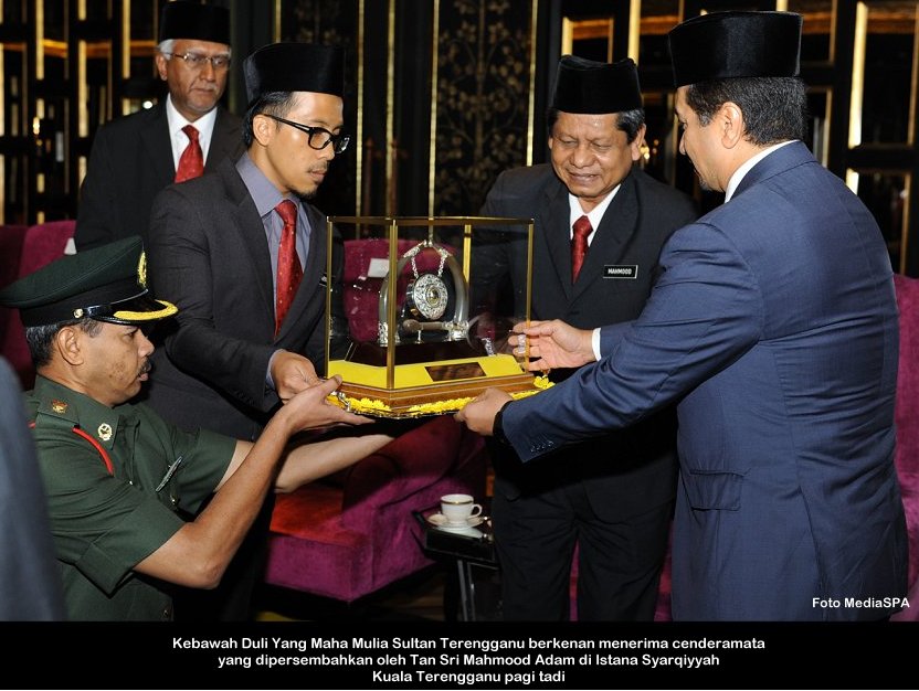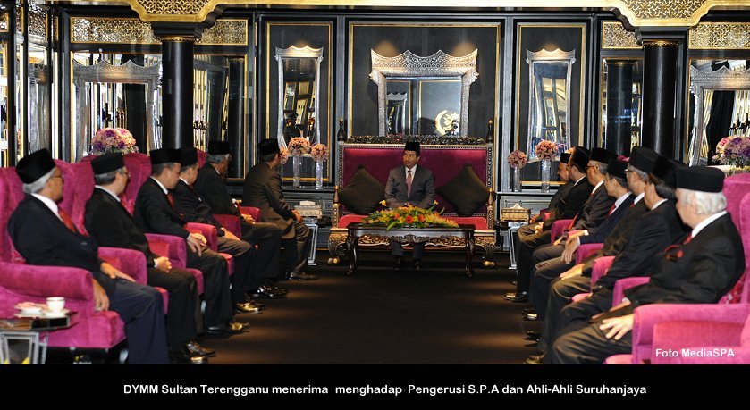 KUALA TERENGGANU, 27 Ogos ------ Kebawah Duli Yang Maha Mulia Al-Wathiqu Billah Sultan Mizan Zainal Abidin Ibni Almarhum Sultan Mahmud Al-Muktafi Billah Shah, Sultan dan Yang Dipertuan bagi Negeri Terengganu Darul Iman telah berkenan menerima menghadap delegasi S.P.A yang diketuai oleh YBhg. Tan Sri Mahmood Adam, Pengerusi S.P.A bertempat di Istana Syarqiyyah Chendering. Turut bersama Timbalan Pengerusi S.P.A, YBhg. Dato' R. Segarajah, Ahli-Ahli Suruhanjaya dan Setiausaha S.P.A, YBhg. Datuk Ramli Juhari. Sesi menghadap Kebawah Duli Yang Maha Mulia Sultan Terengganu ini adalah sempena program rasmi S.P.A yang sedang berlangsung di Kuala Terengganu iaitu Mesyuarat Suruhanjaya, Retreat Suruhanjaya, Mesyuarat Bersama Pengerusi-Pengerusi Dan Setiausaha-Setiausaha S.P.A Negeri, Seminar S.P.A Outreach, Sesi Interaksi dan Karnival Kerjaya S.P.A. ------ MediaSPA