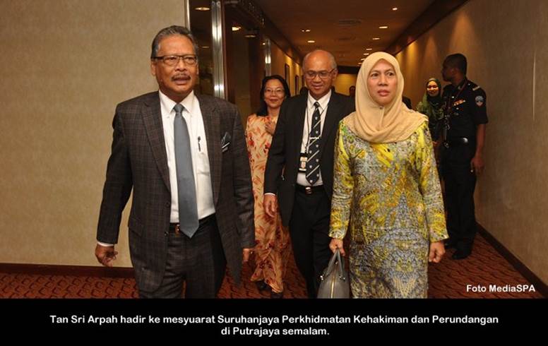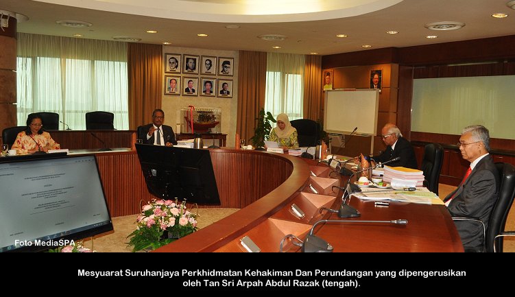 PUTRAJAYA, 15 September ----- ----- Suruhanjaya Perkhidmatan Kehakiman dan Perundangan (SPKP) telah mengadakan Mesyuarat yang ke-134 di Putrajaya, semalam. Mesyuarat yang dipengerusikan oleh Pengerusi SPKP, YBhg. Tan Sri Arpah Abdul Razak turut dihadiri oleh Ahli-Ahli SPKP iaitu Peguam Negara, Yang Amat Arif Hakim Besar Malaya, Yang Arif Hakim Mahkamah Tinggi Kuching dan Setiausaha SPKP, YBhg. Dato' Zainal Abidin Ahmad. Turut hadir mesyuarat berkenaan adalah Peguam Cara Negara II, Timbalan Ketua Pendaftar (Polisi) Mahkamah Persekutuan dan pegawai-pegawai kanan Urus Setia SPKP. Mesyuarat telah menimbangkan kertas-kertas bagi urusan penentuan gaji permulaan, kenaikan pangkat, pemangkuan, tatatertib, surcaj dan isu-isu dasar perkhidmatan berkaitan Pegawai Undang-Undang dalam Perkhidmatan Kehakiman dan Perundangan.----- SPKP/MediaSPA